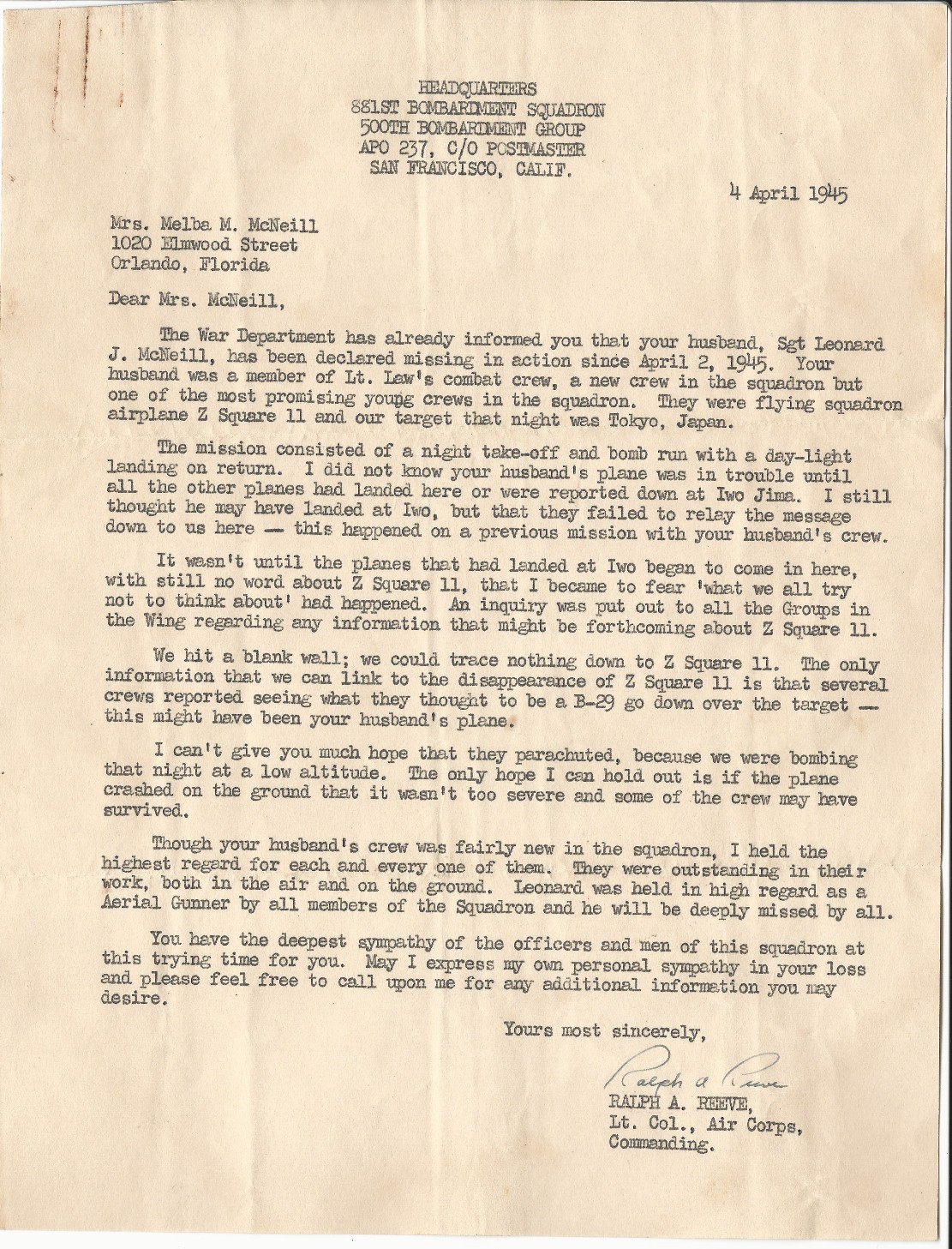 Except for a letter handwritten by Mrs Melba McNeill, all the correspondence