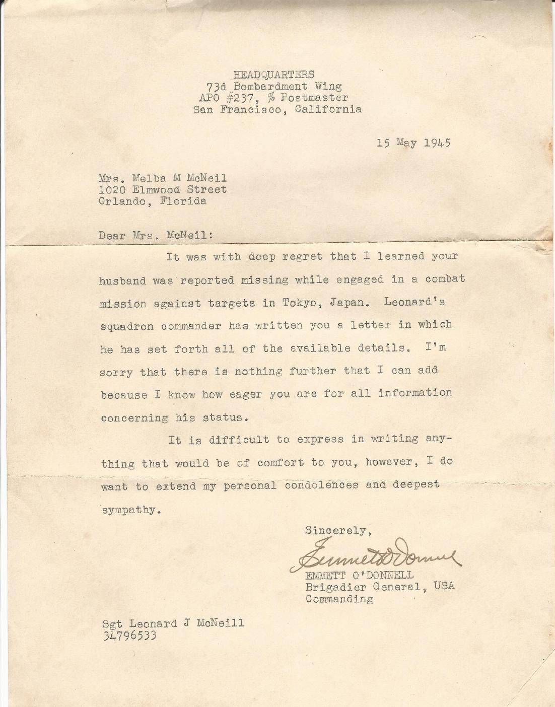 General Emmett O'Donnell, Commanding Officer 73rd Bomb Wing.