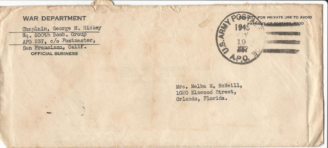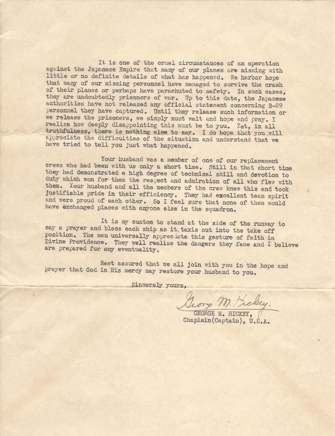 This is followed by a letter from George M Hickey, Chaplain, 500th Bomb Group |