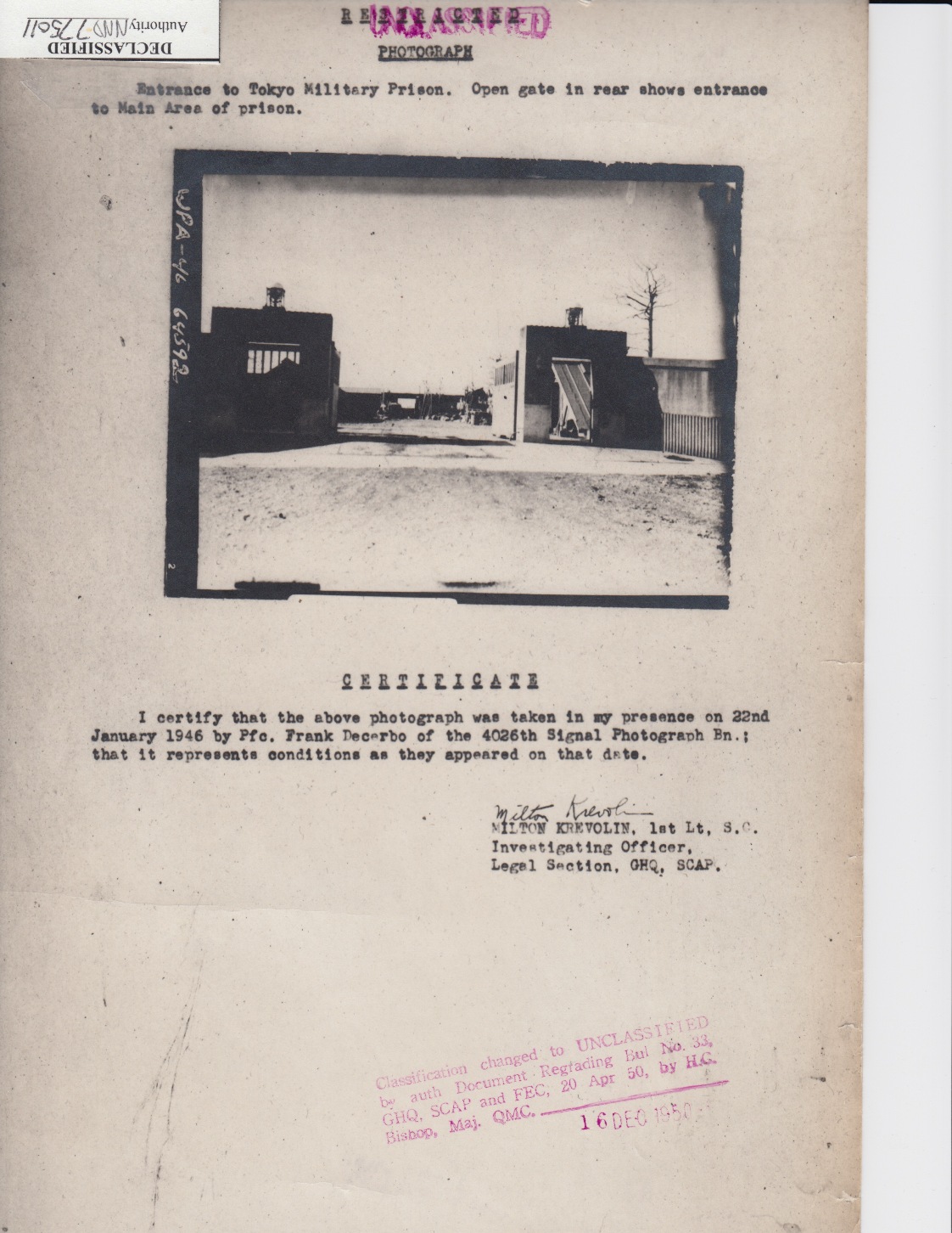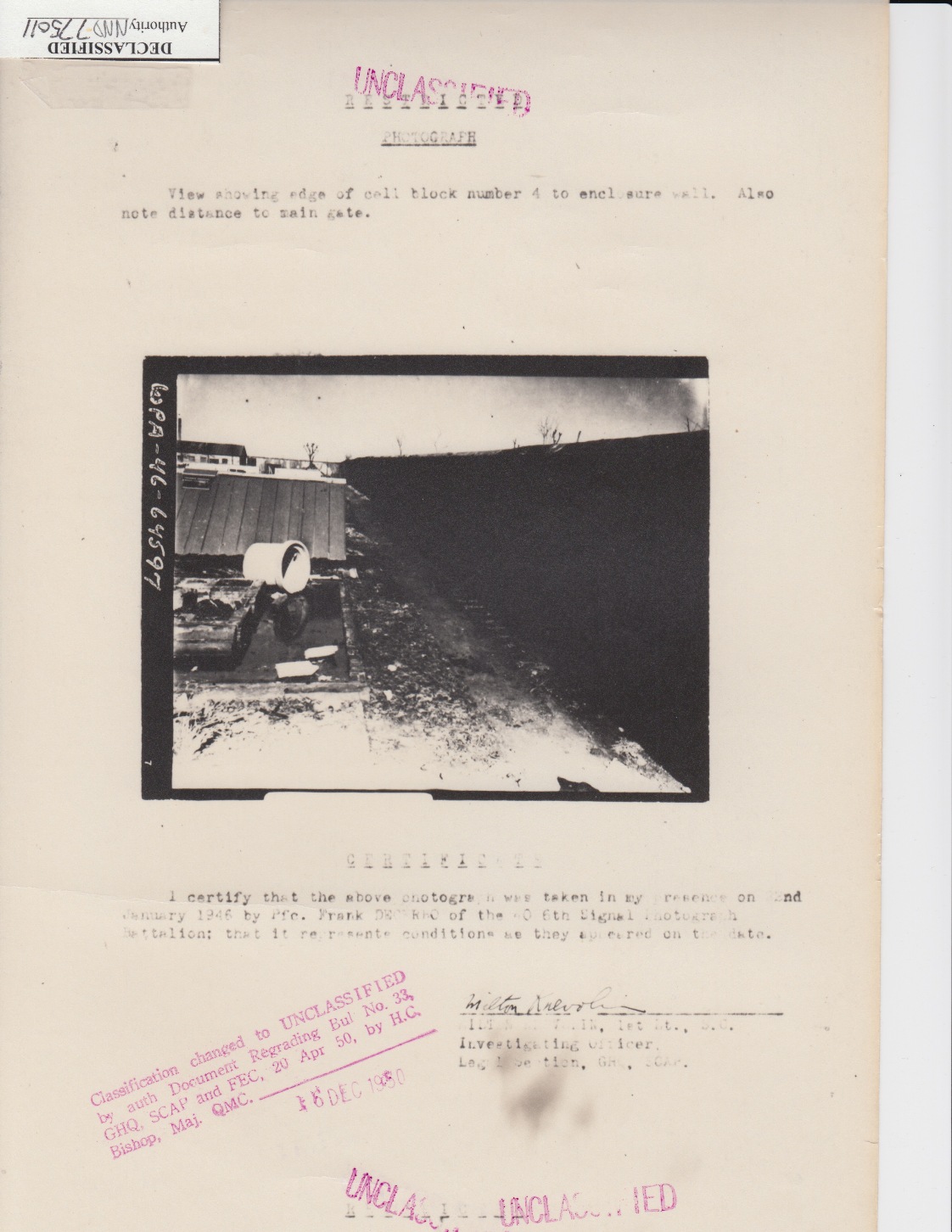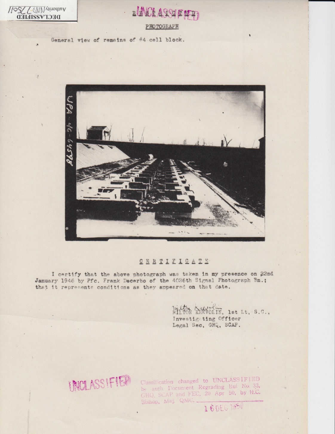 In his testimony, Mr Wilson mentioned 1st Lt Milton Krevolin Investigating Officer, Legal Section, GHQ, SCAP His signature appears on many of the photos |