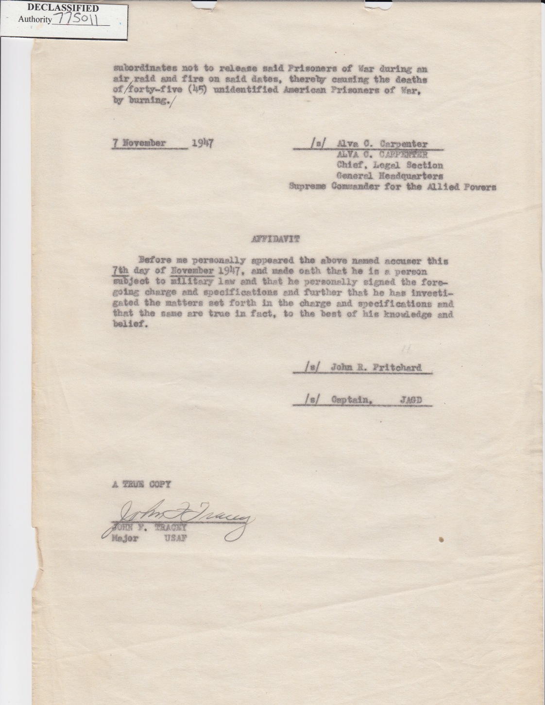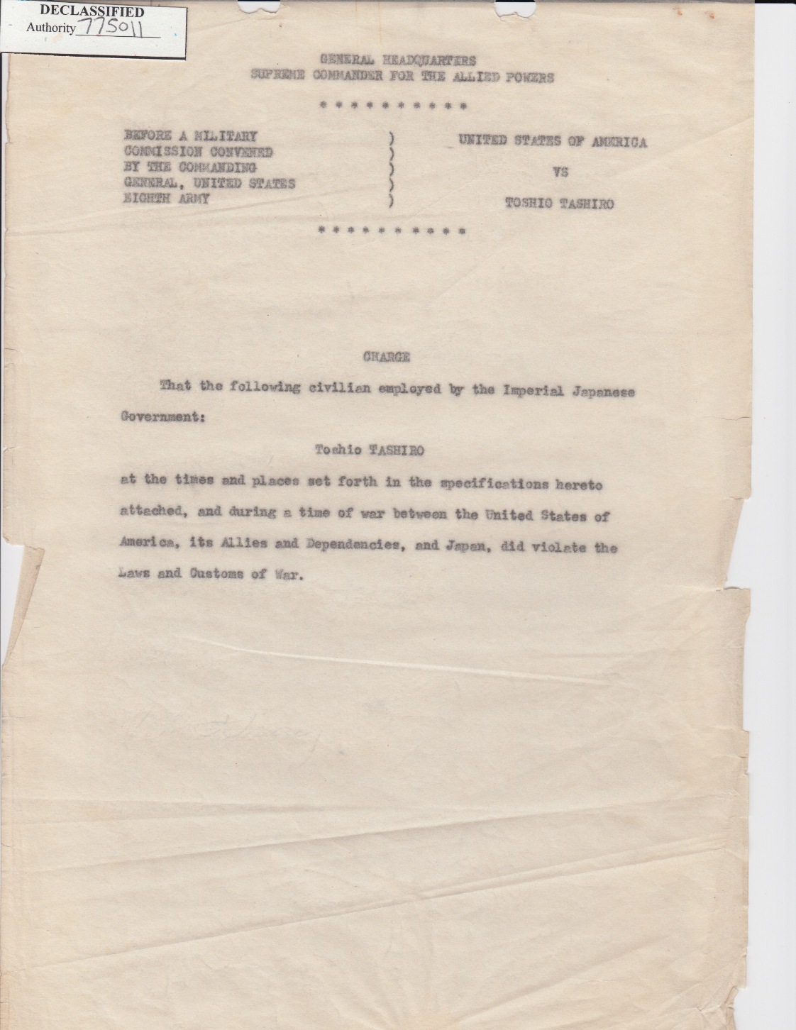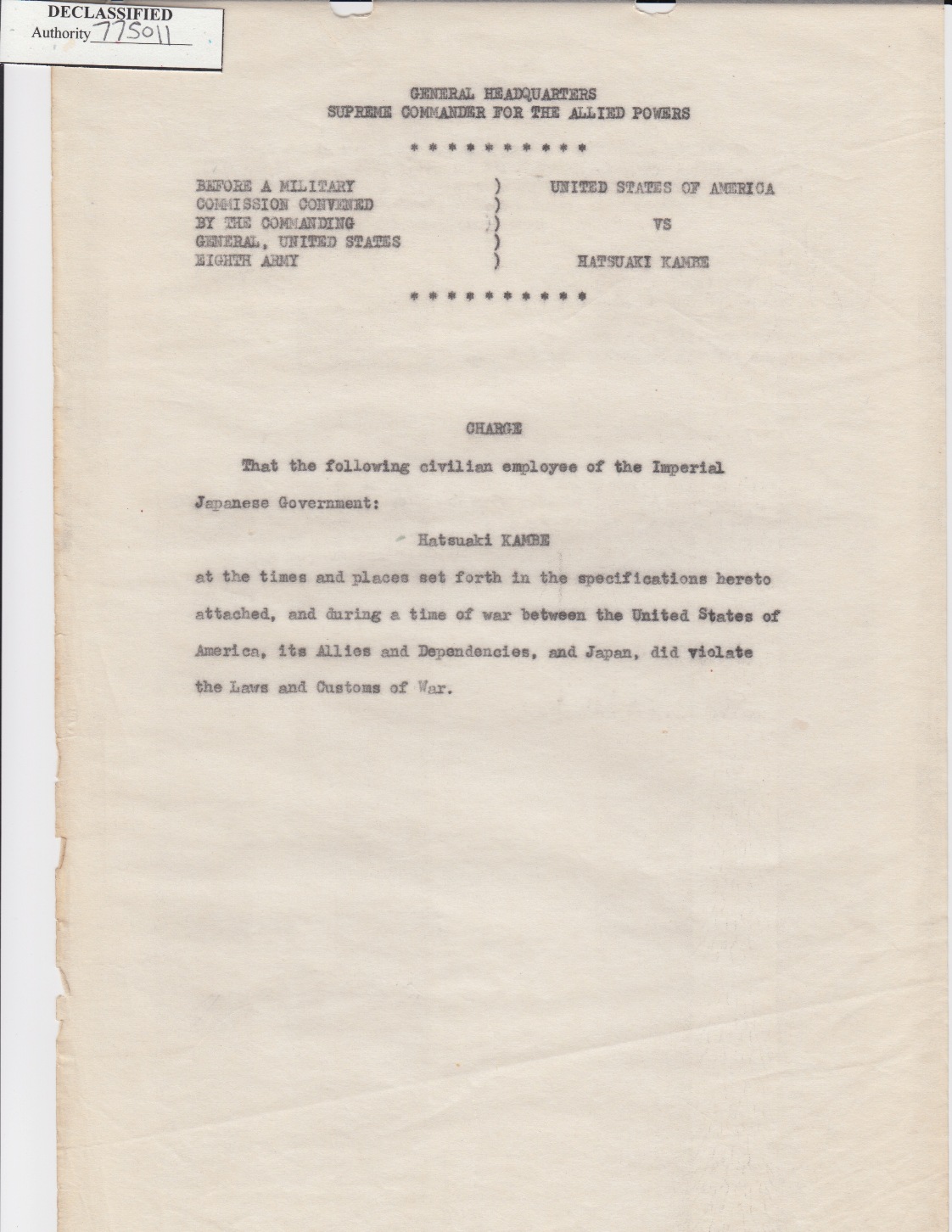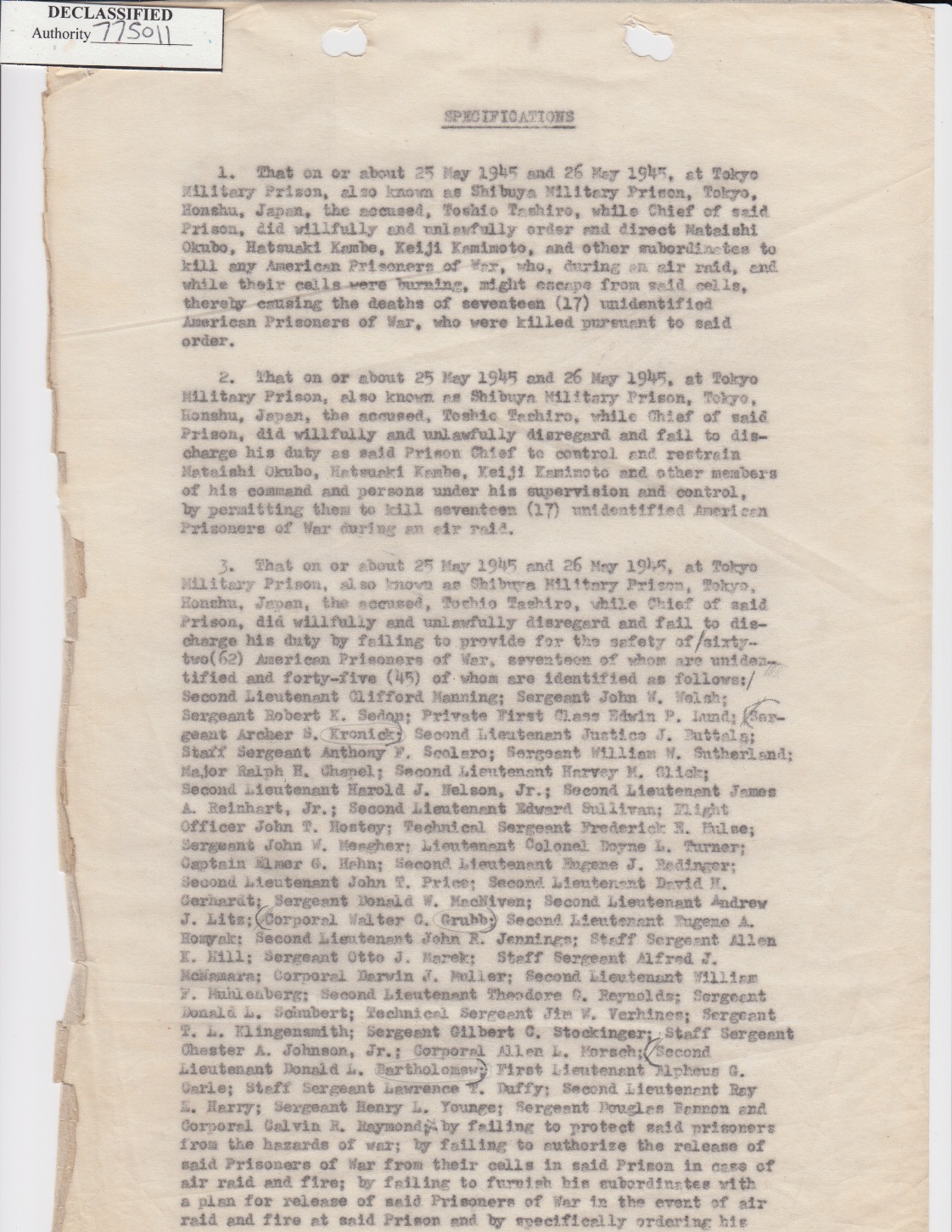 Sgt Leonard James McNeill Tokyo Military Prison Yokohama Trial 078 Charges Page 1