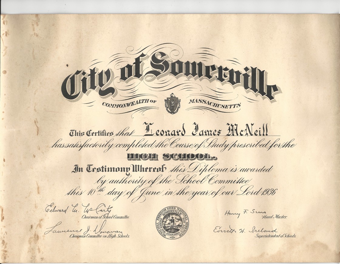 His High School Diploma A page from the 1934 Somerville High School Yearbook |