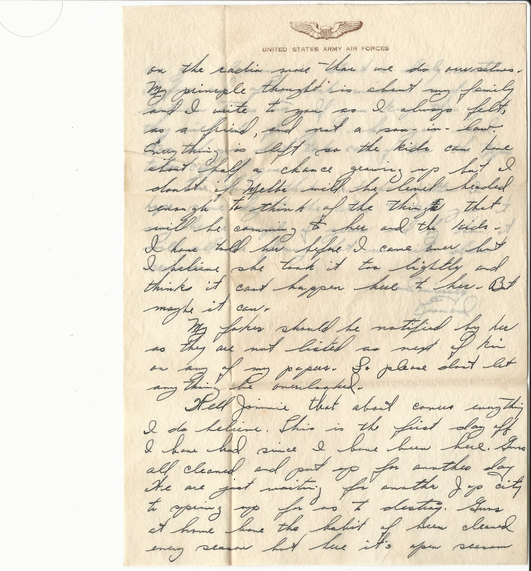 Letter from Leonard to Jimmie Culbreth ( Melba's father )