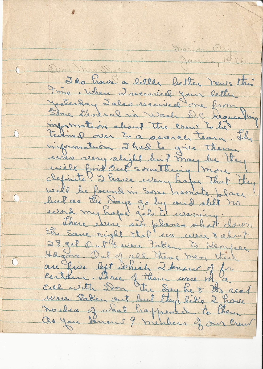 from Ray Hopper She may have sent this to Melba This could be a transcription of the original letter The handwriting looks like Melba's 12 January 1946 |