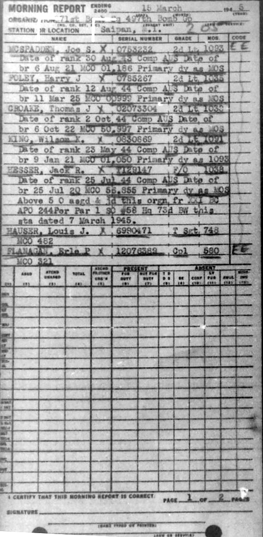 lists first the Officers and then the Enlisted Men in Lt McSpadden's