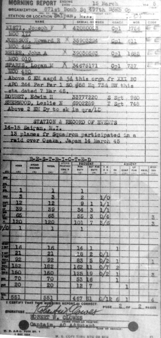 Within the 73rd Bomb Wing and 497th Bomb Group