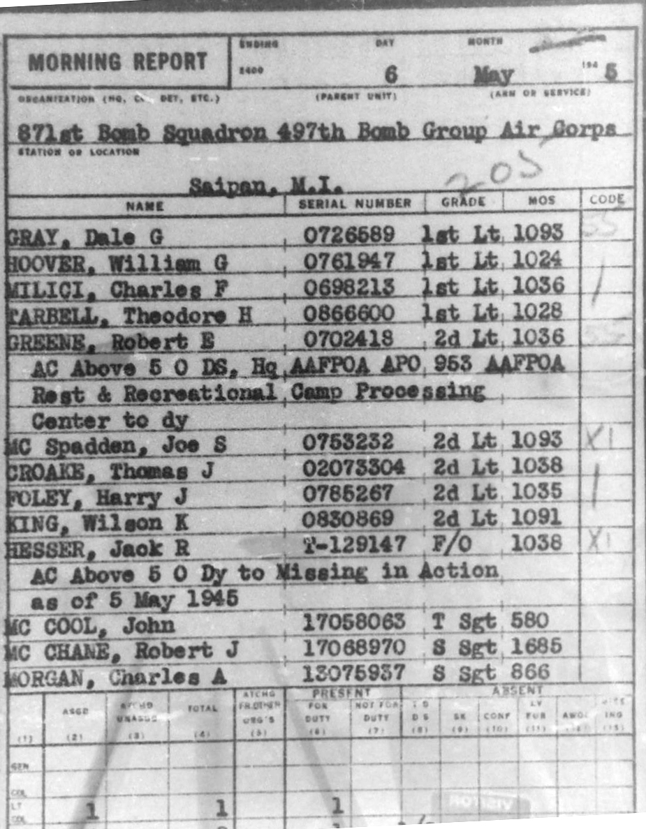 The men that flew with Lt Joe Stanley McSpadden were a replacement