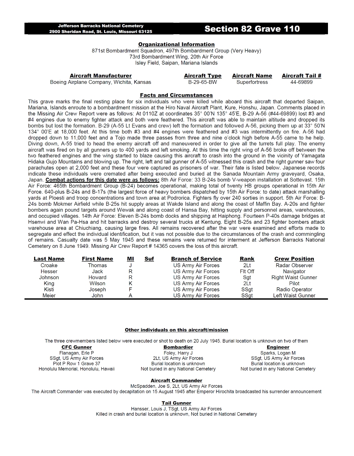 At the bottom are the names of the Crew Members buried at