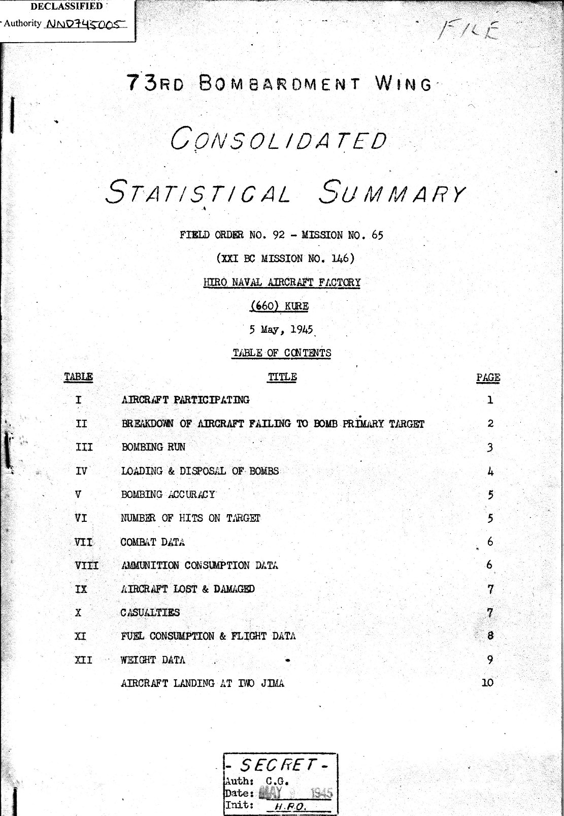 The complete 73rd Bomb Wing Mission #65 Report contains 185 pages.