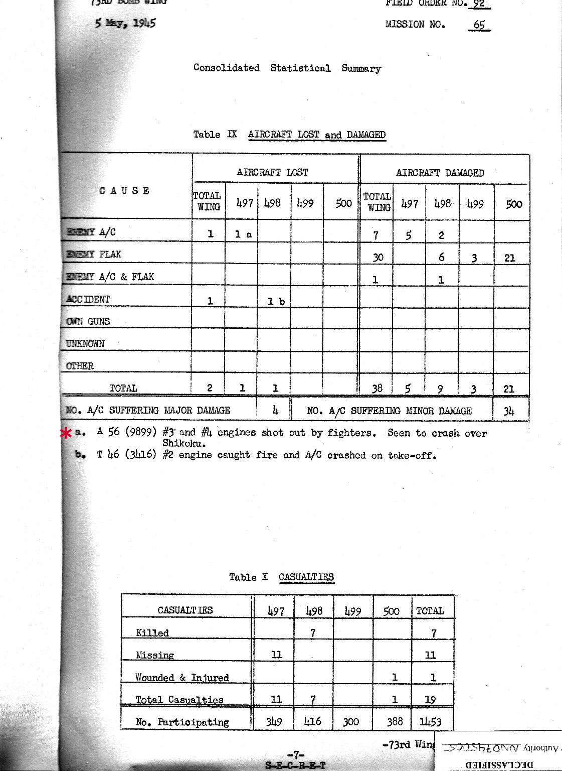 One B-29 from the 497th Bomb Group and one from the 498th Bomb Group