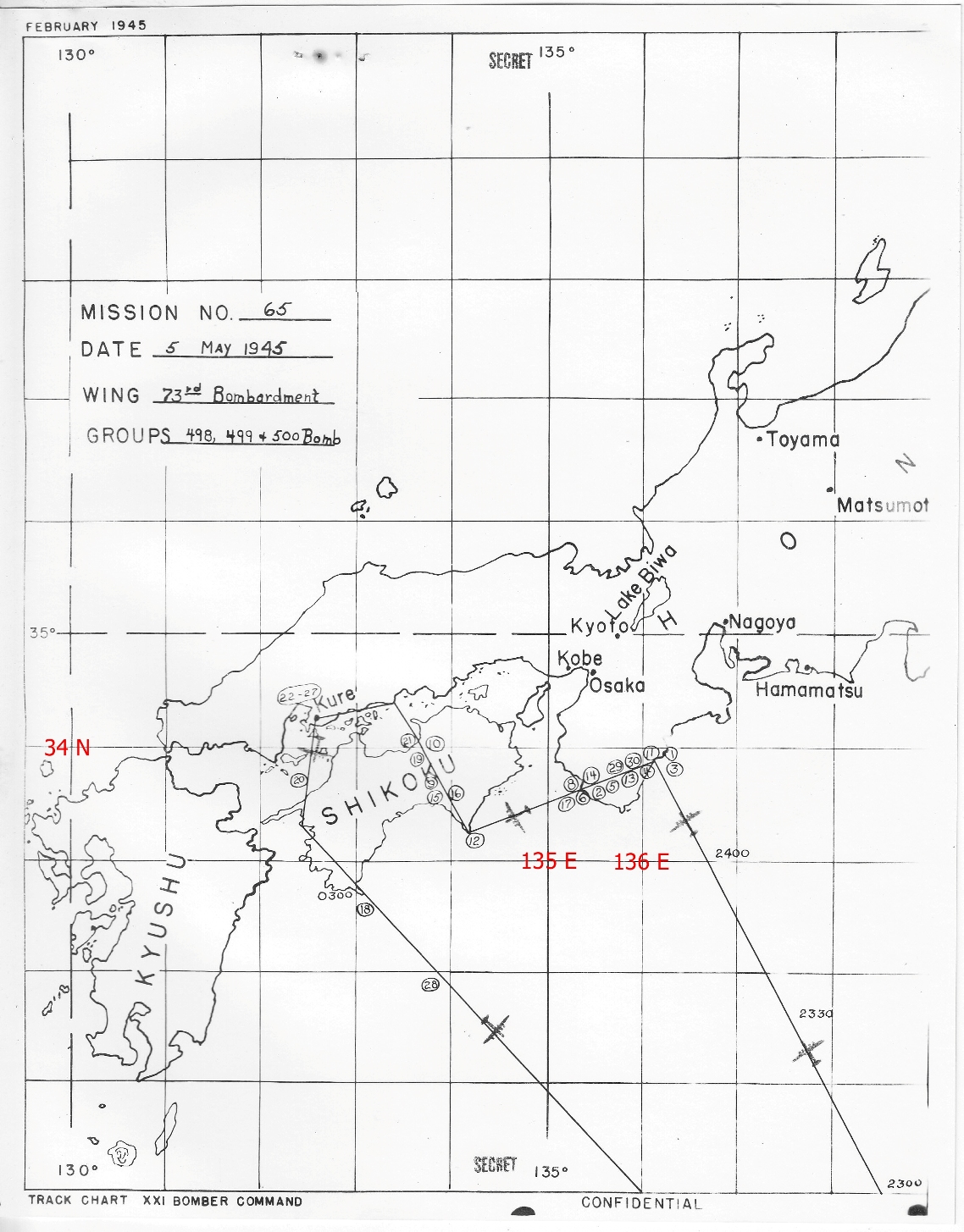 where his B-29 crashed roughly 50 miles South East of Osaka.
