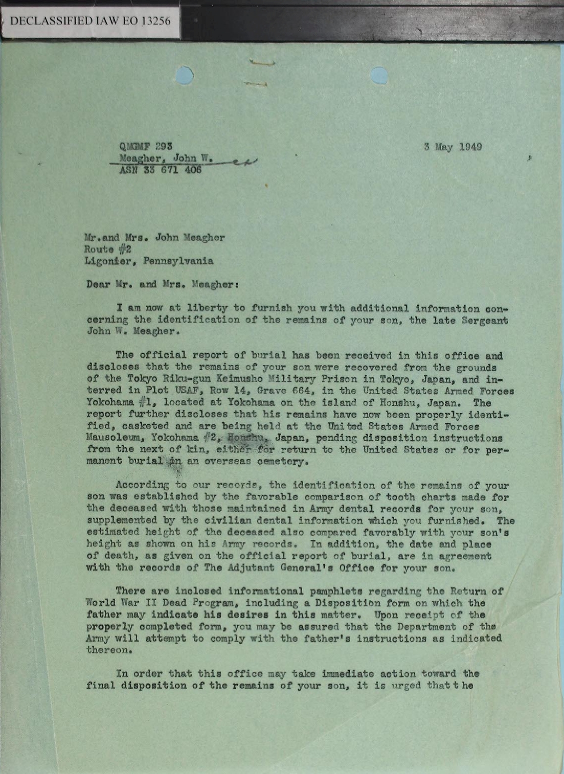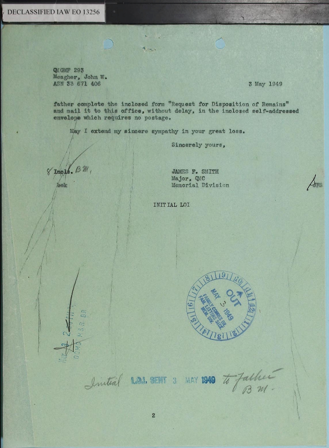 3 MAY 1949 FROM MAJOR JOHN F SMITH |