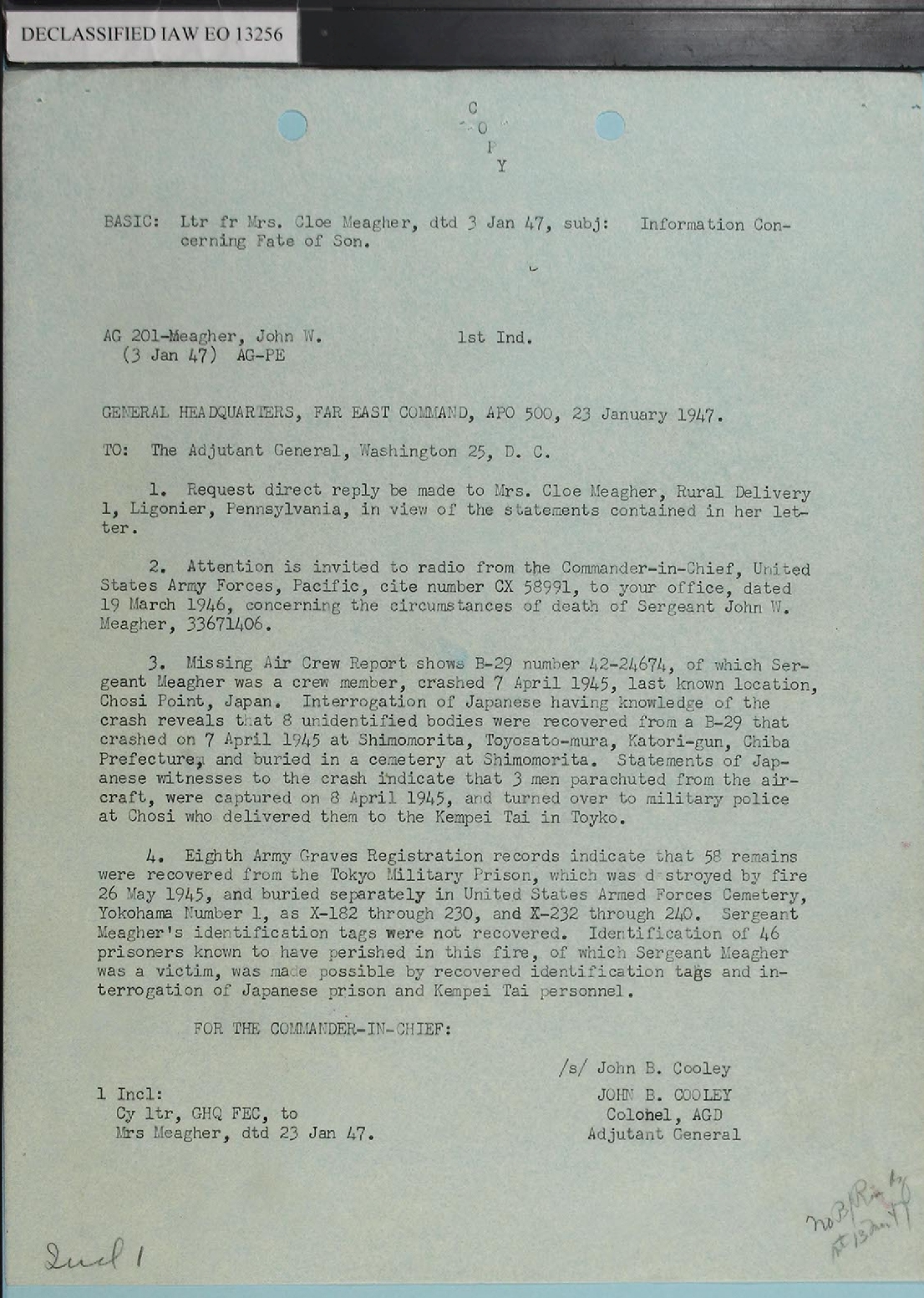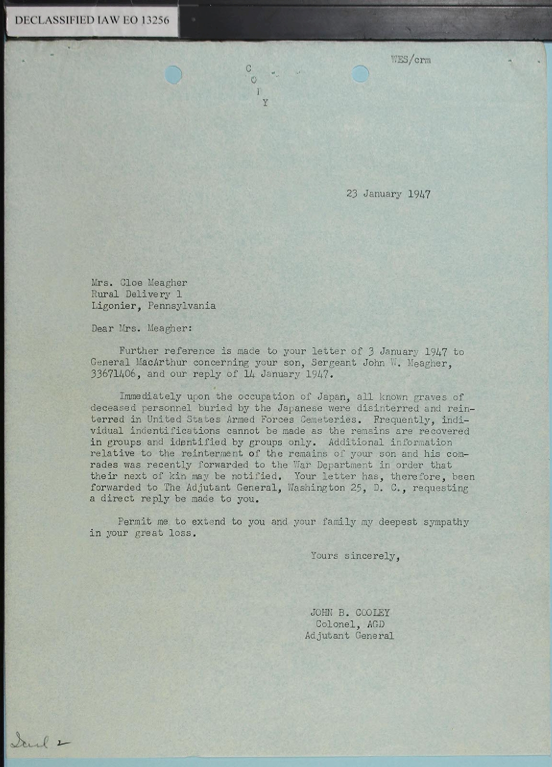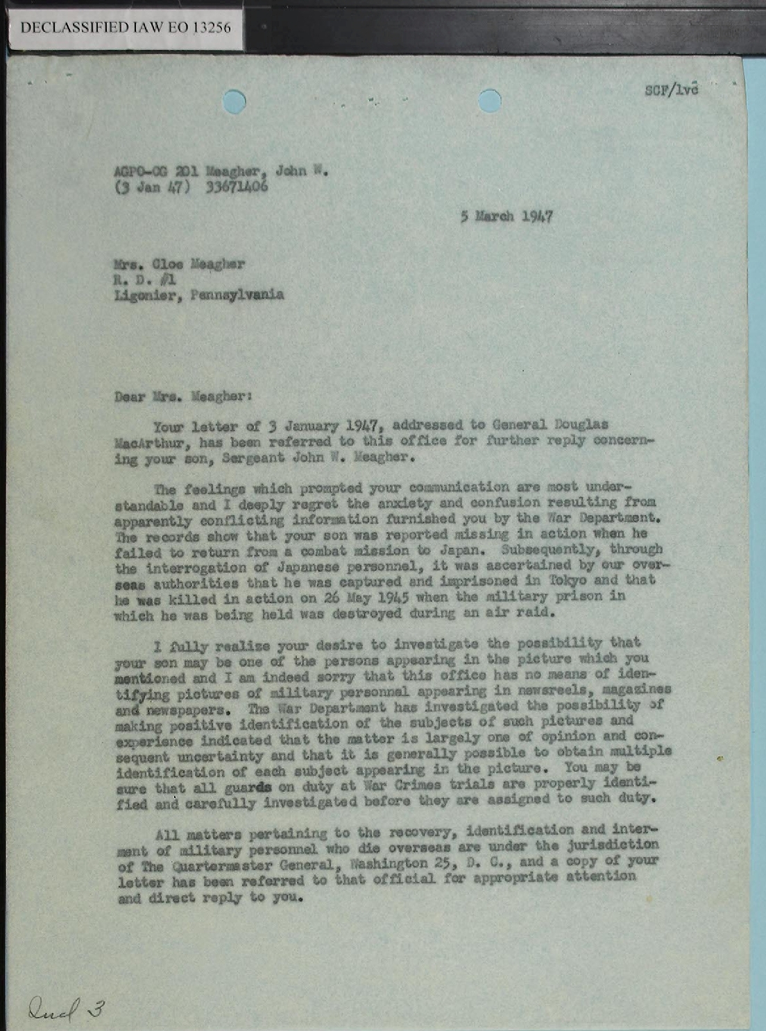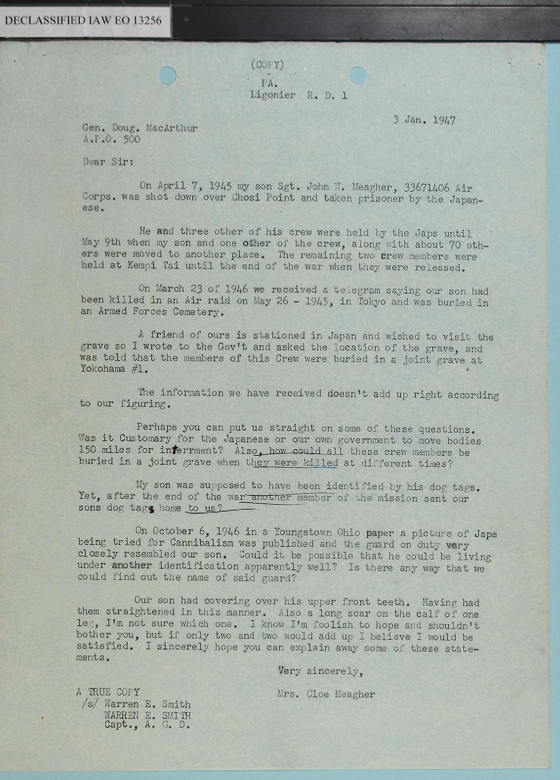 LETTER TO MRS CLOE MEAGHER PAGE 1 |