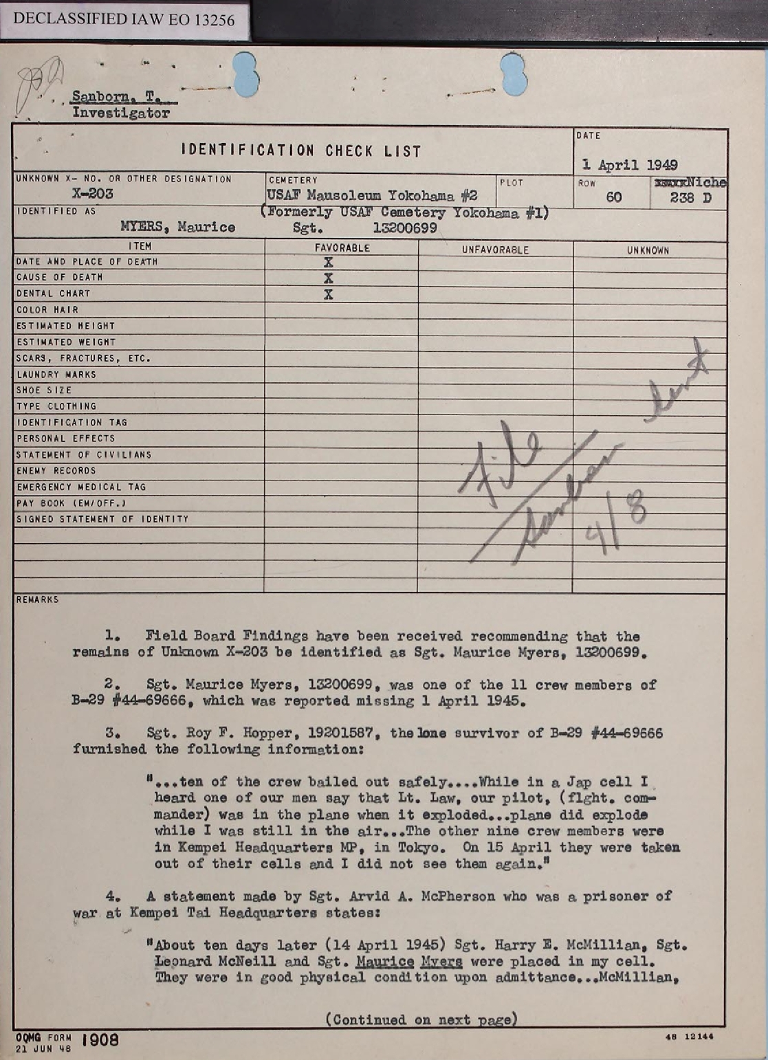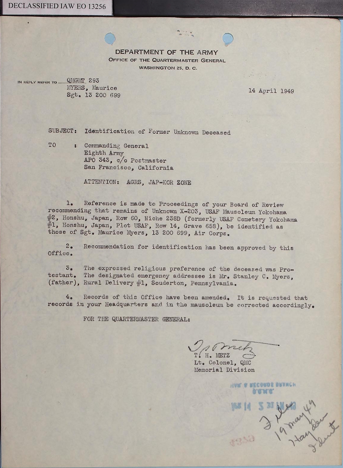DEPARTMENT OF THE ARMY RECOMMENDATION OF UNKNOWN X-203 IS APPROVED |
