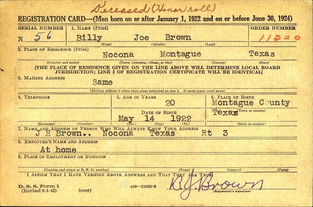 SSgt Billy Joe Brown, also known as Billie Joe Brown,