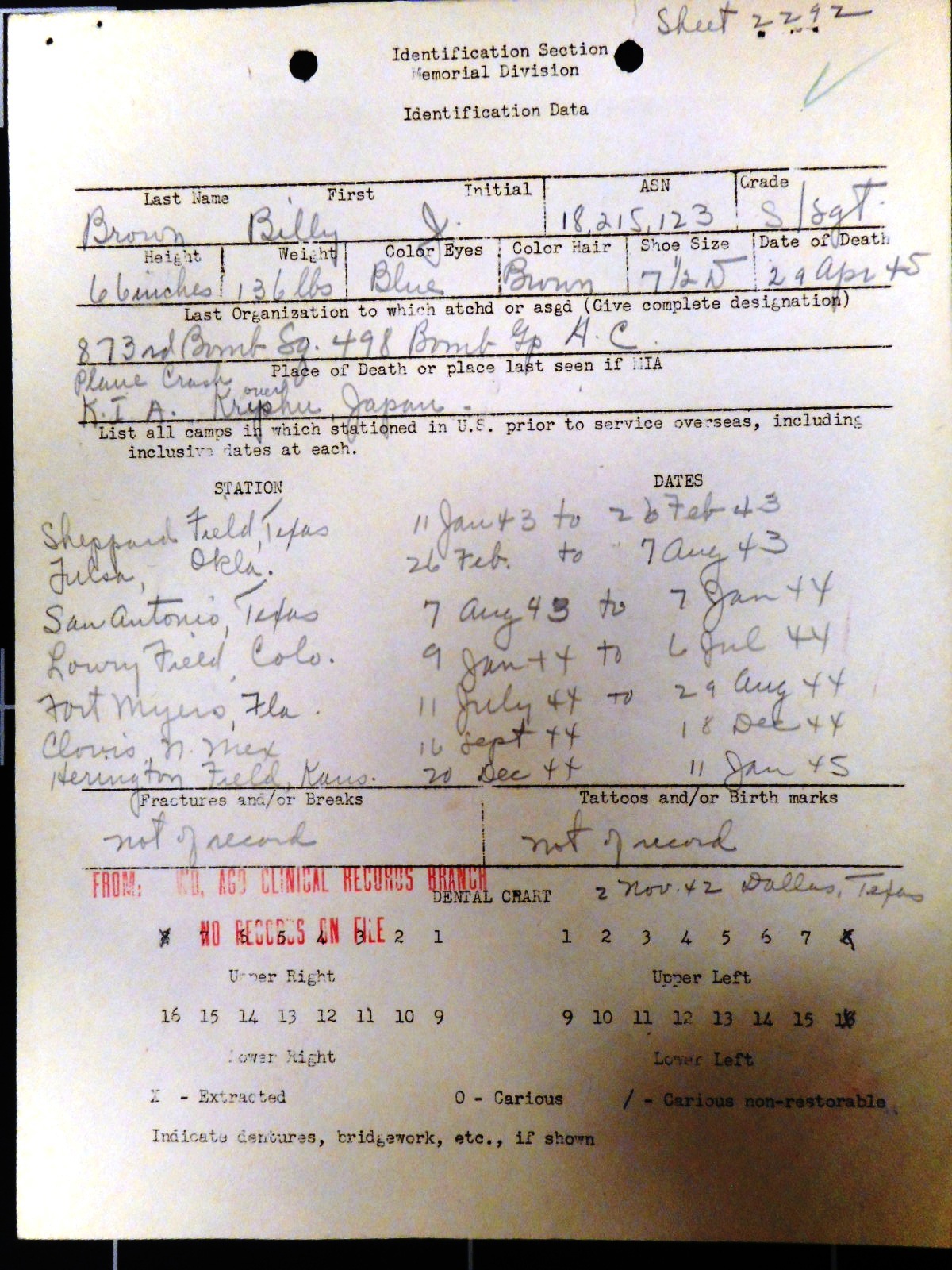 SSgt Brown was placed on Permanent Flying Status 28 September 1944.