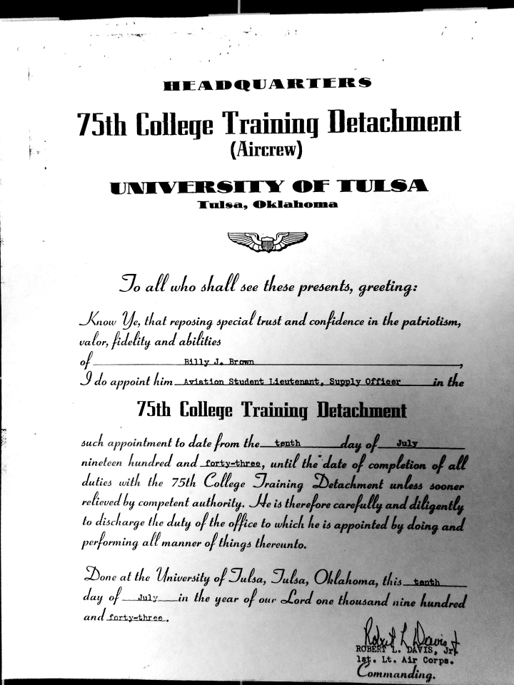 In between his time at Fort Myers and Clovis AAF, Billy Joe was granted