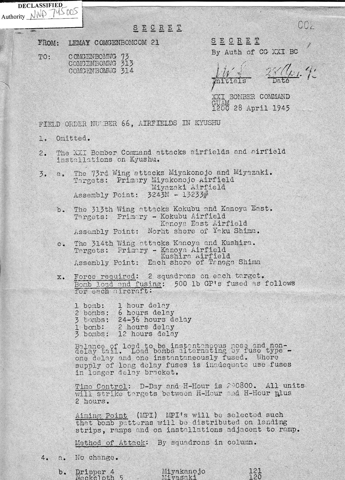 Next is the first page of Field Order Number 66 issued by XXI Bomber