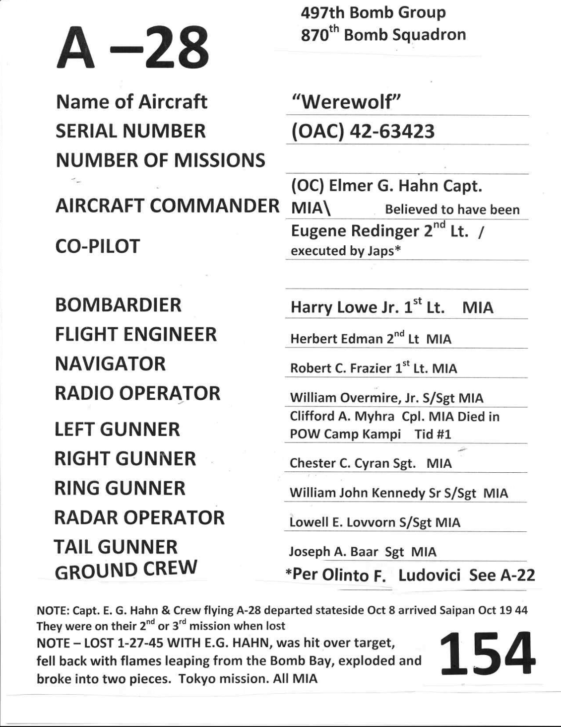 Capt Elmer G Hahn