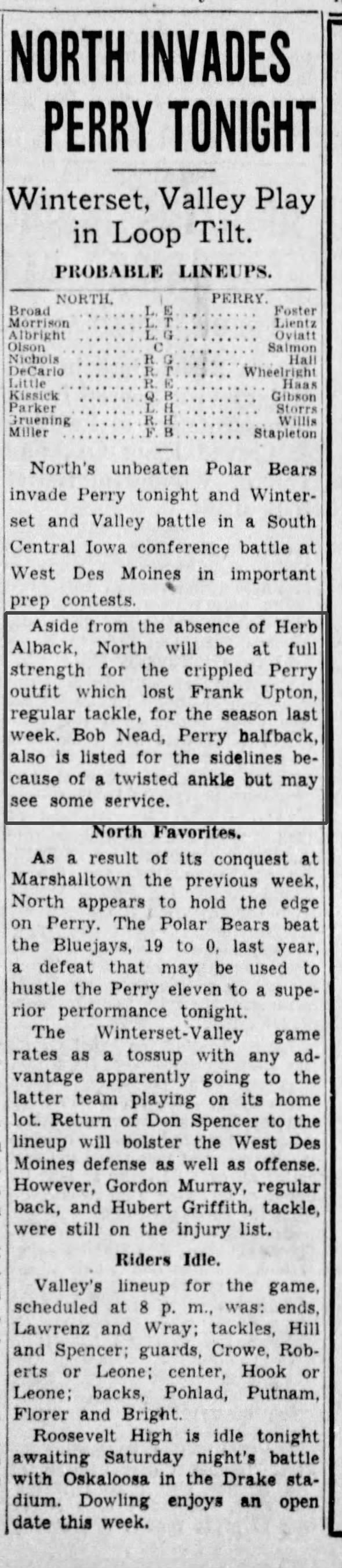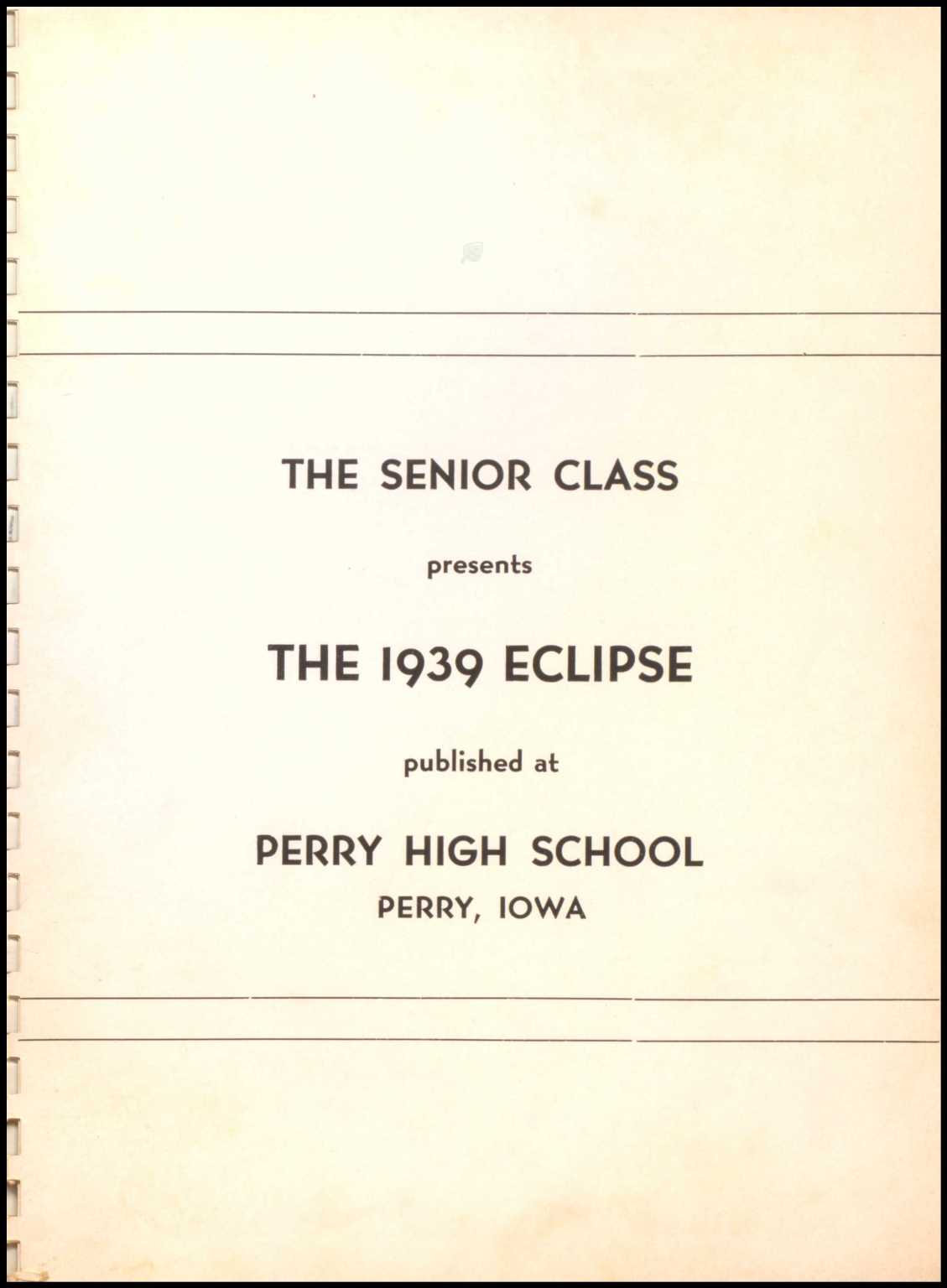 Selected pages from the Perry High School 1939 Eclipse are below. Robert ( Bob ) Nead's name appears in several pages Beneath their photos is the Football Team and |