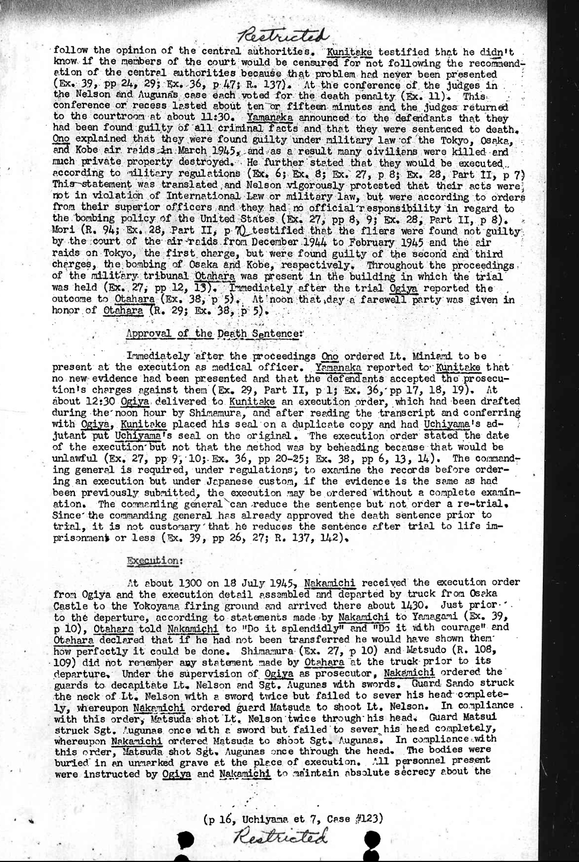 24 August 1945 remains exhumed, cremated at place of execution, and