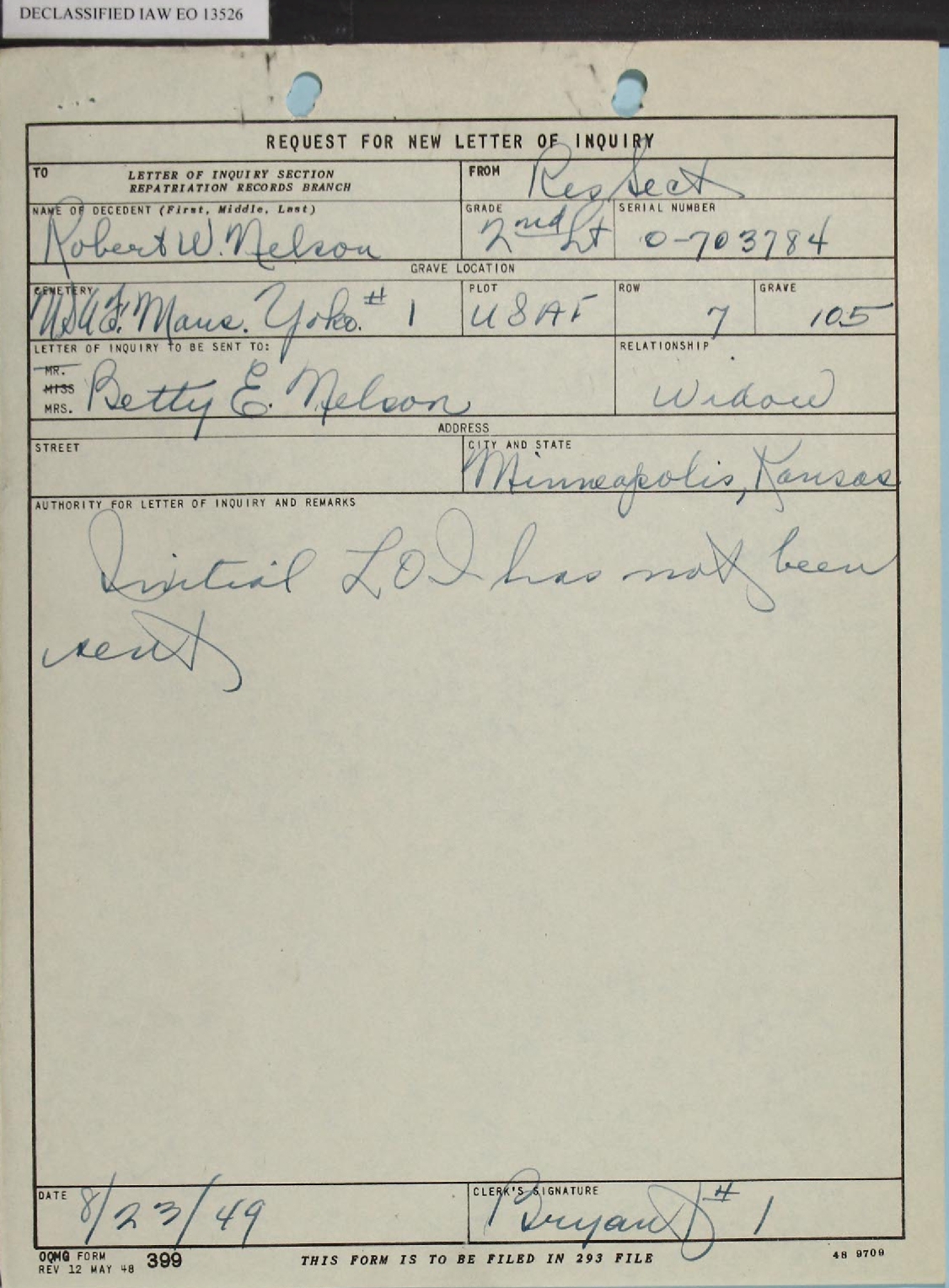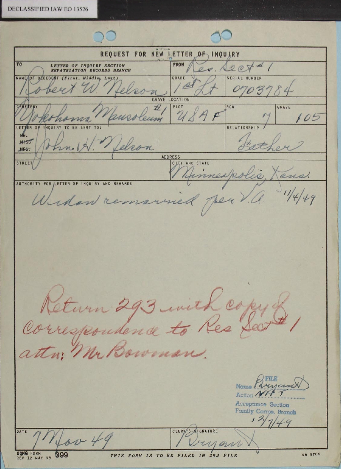 1st Lt Robert Watson Nelson's journey began when his cremated remains