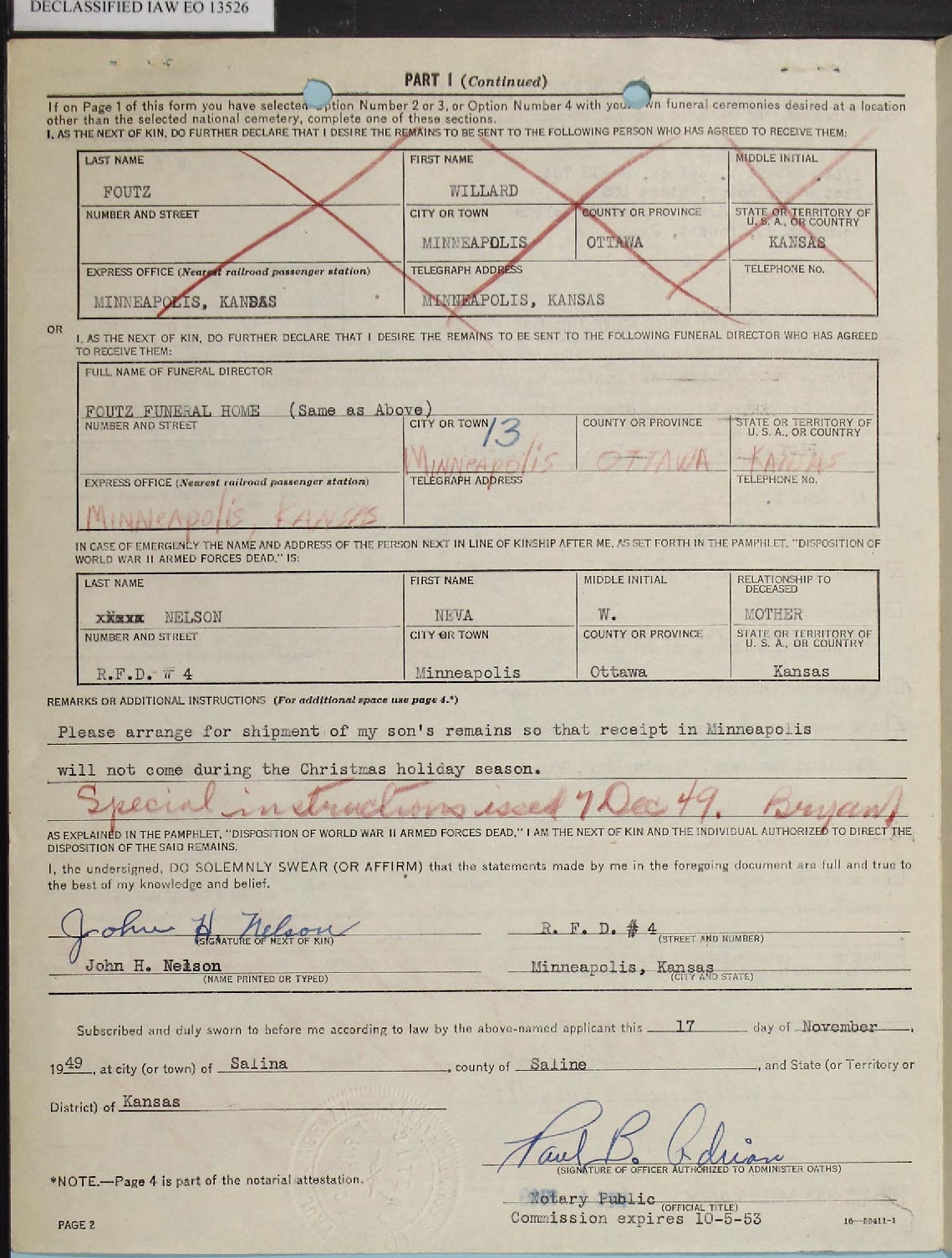 of The form titled REQUEST FOR DISPOSITION OF REMAINS |