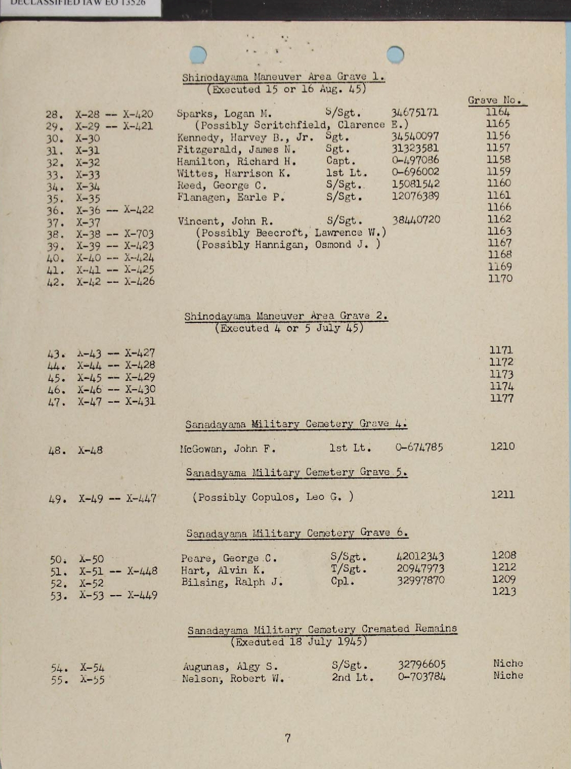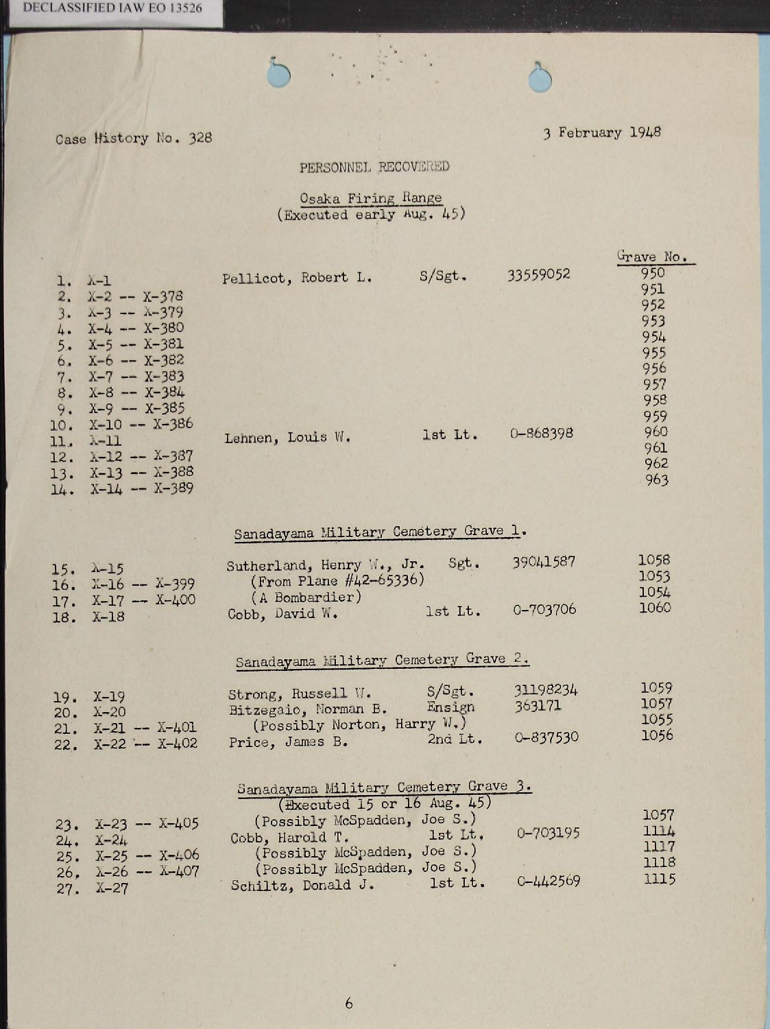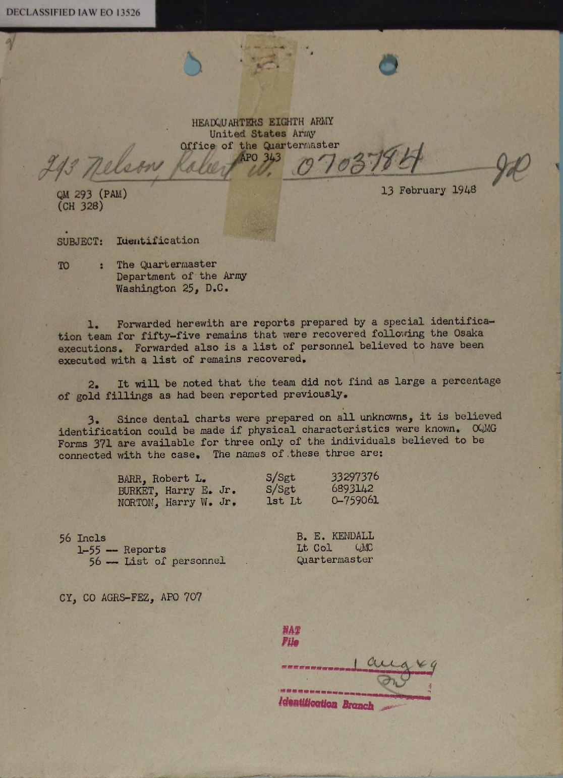 PERSONNEL RECOVERED. These contain a list of the 55 X-numbers from Osaka. In some instances you will see that some of these men have been identified. |
