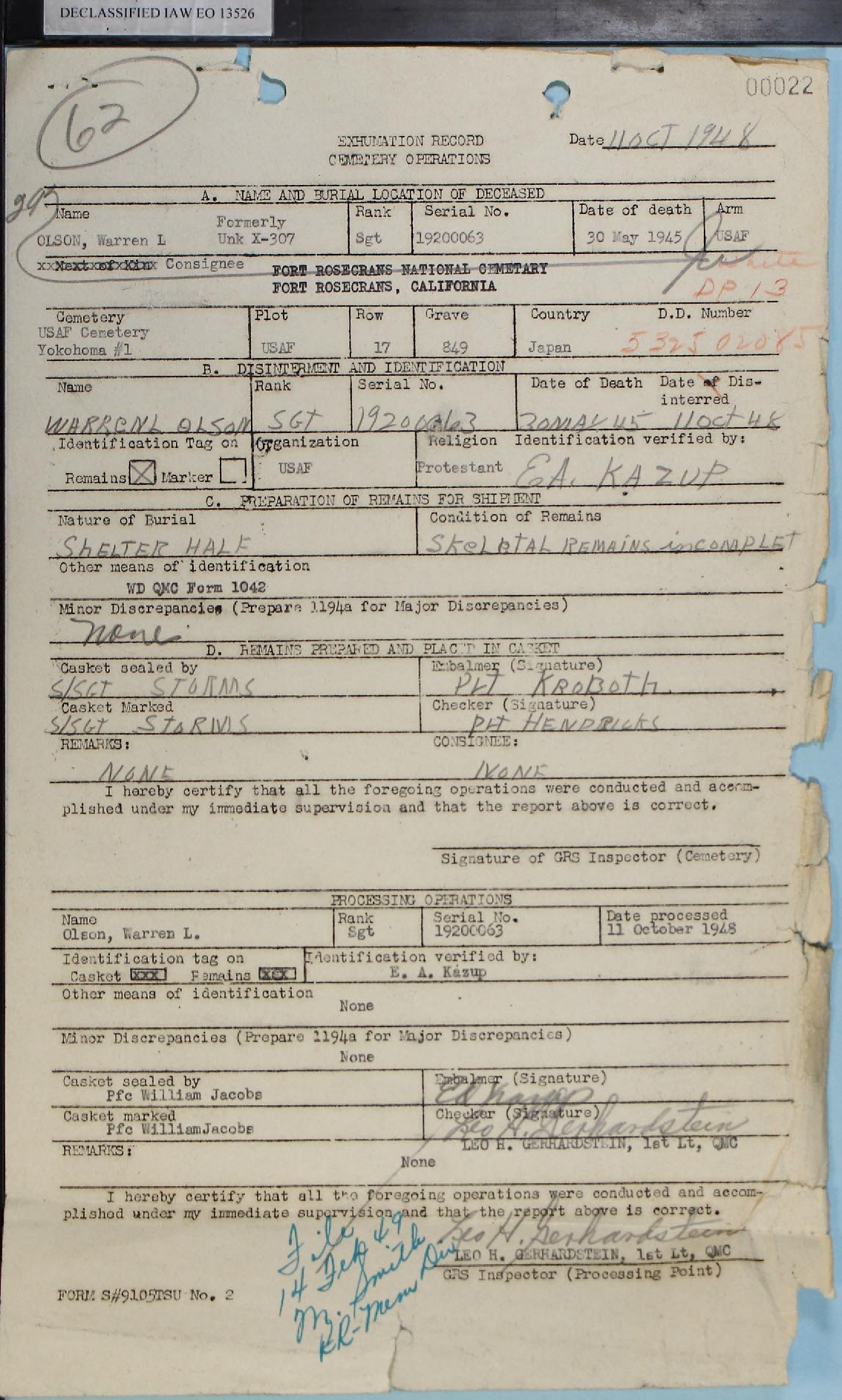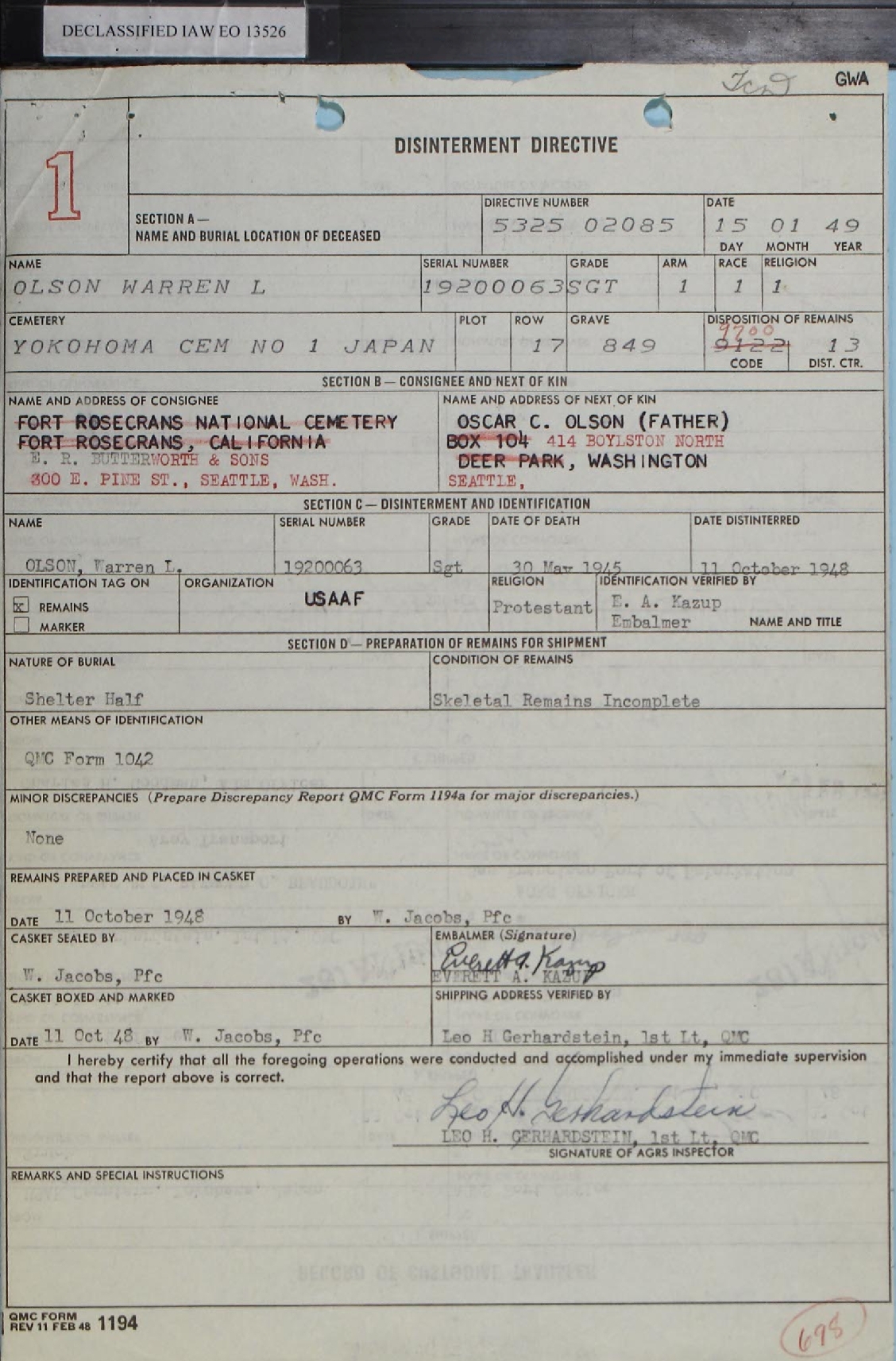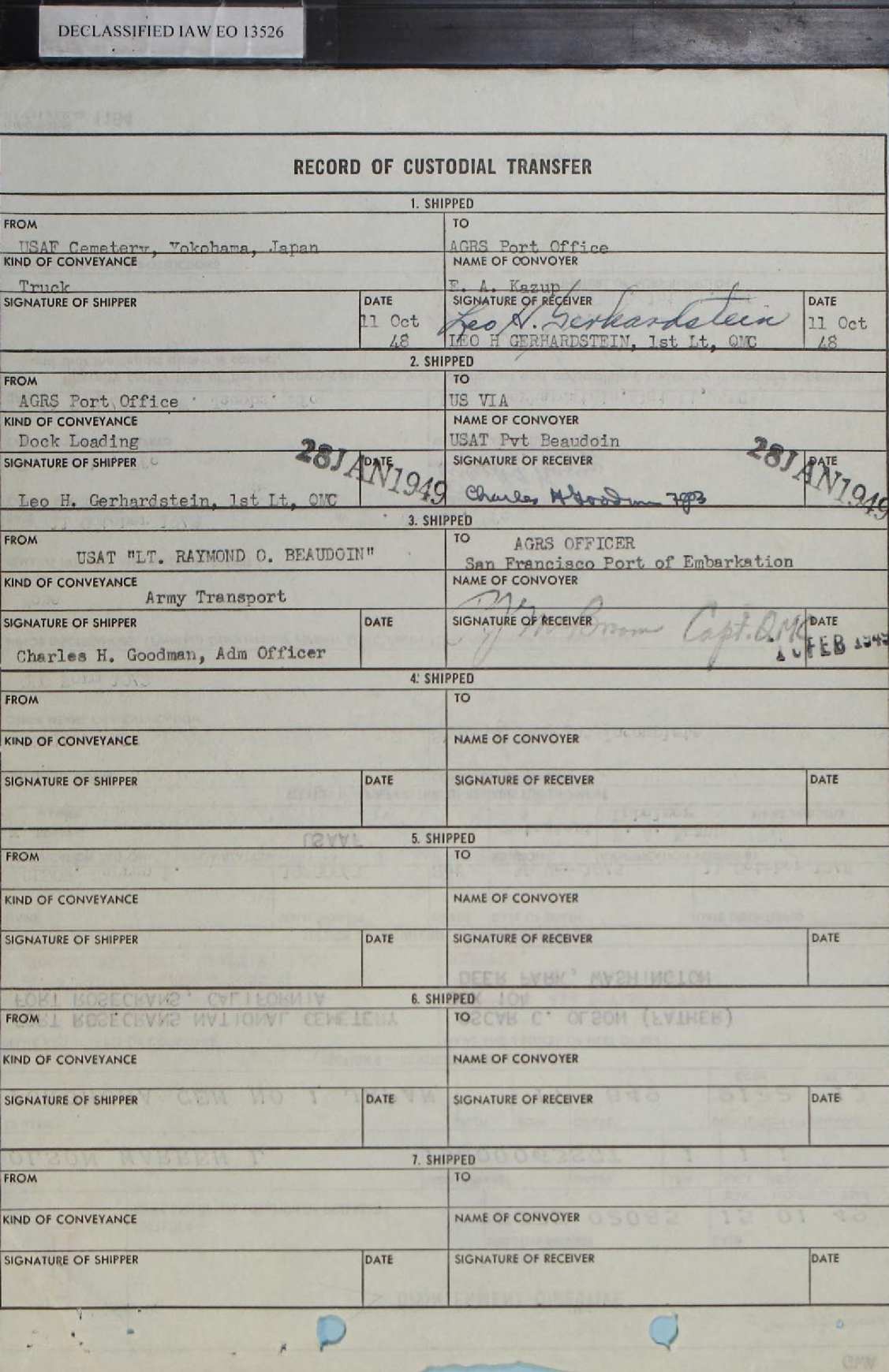 at Yokohama Cemetery #1 and the Record of Custodial Transfer.