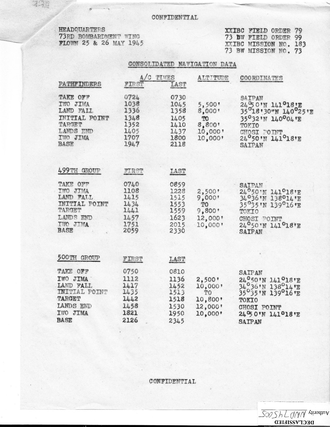source: 73rd Bomb Wing Mission #73 Report |