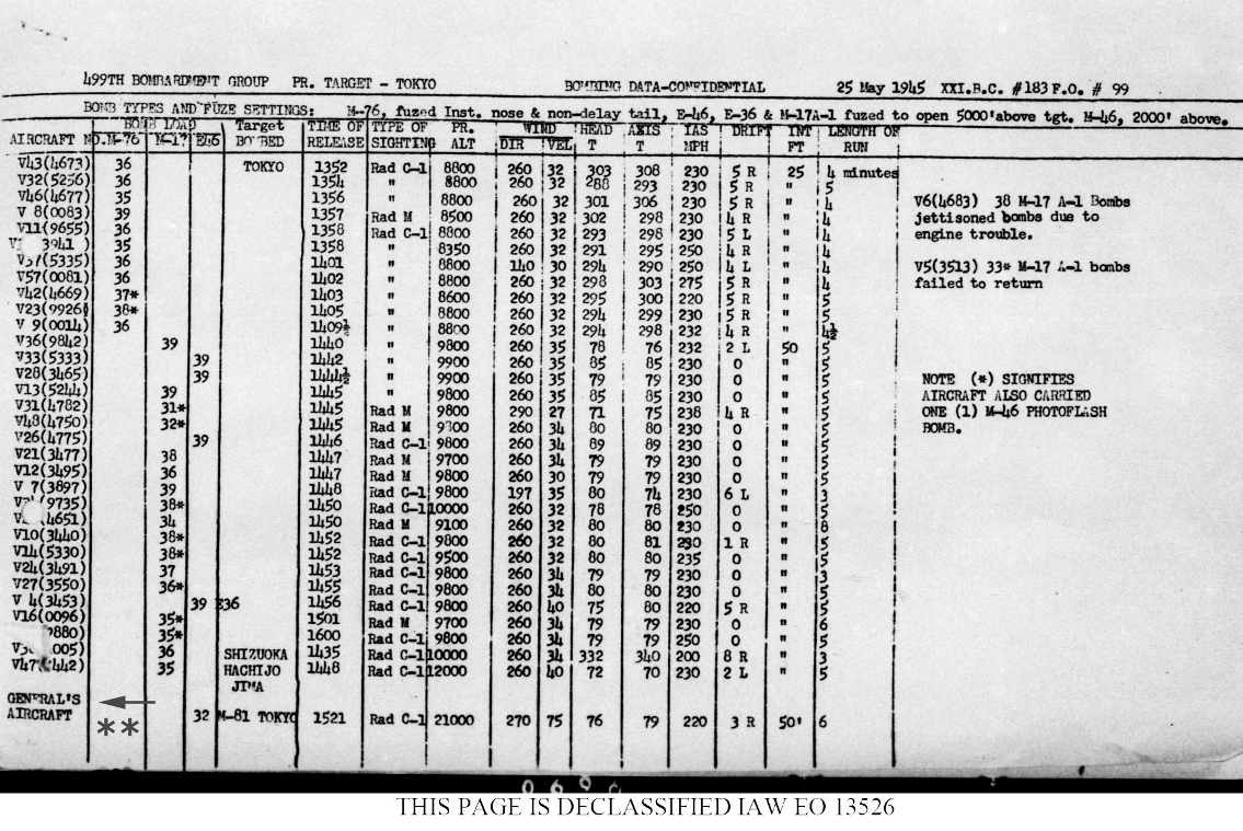 The first document is the Bombing Data for the 499th Bomb Group. Under the column TIME OF RELEASE you will note that the aircraft