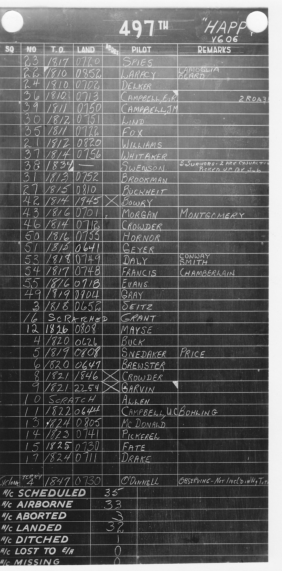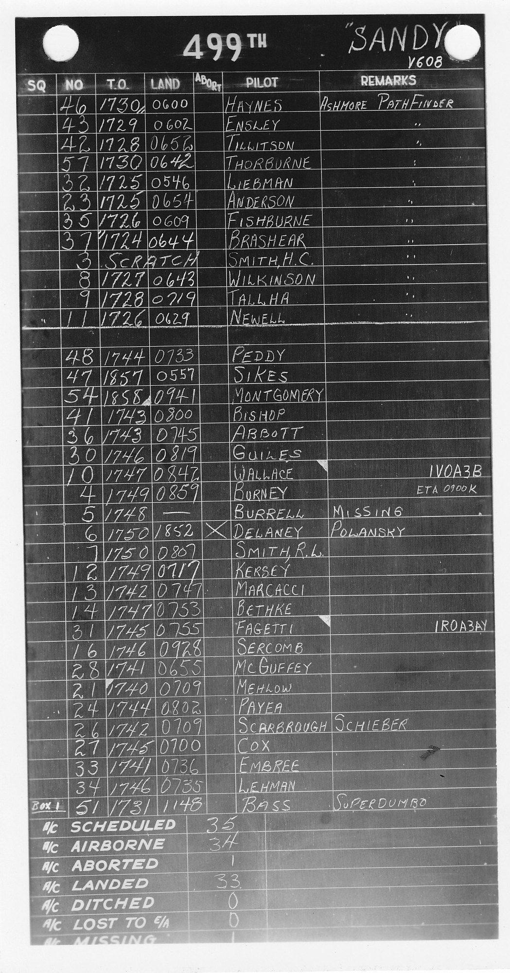 499th BOMB GROUP MISSION # 73 BLACKBOARD |