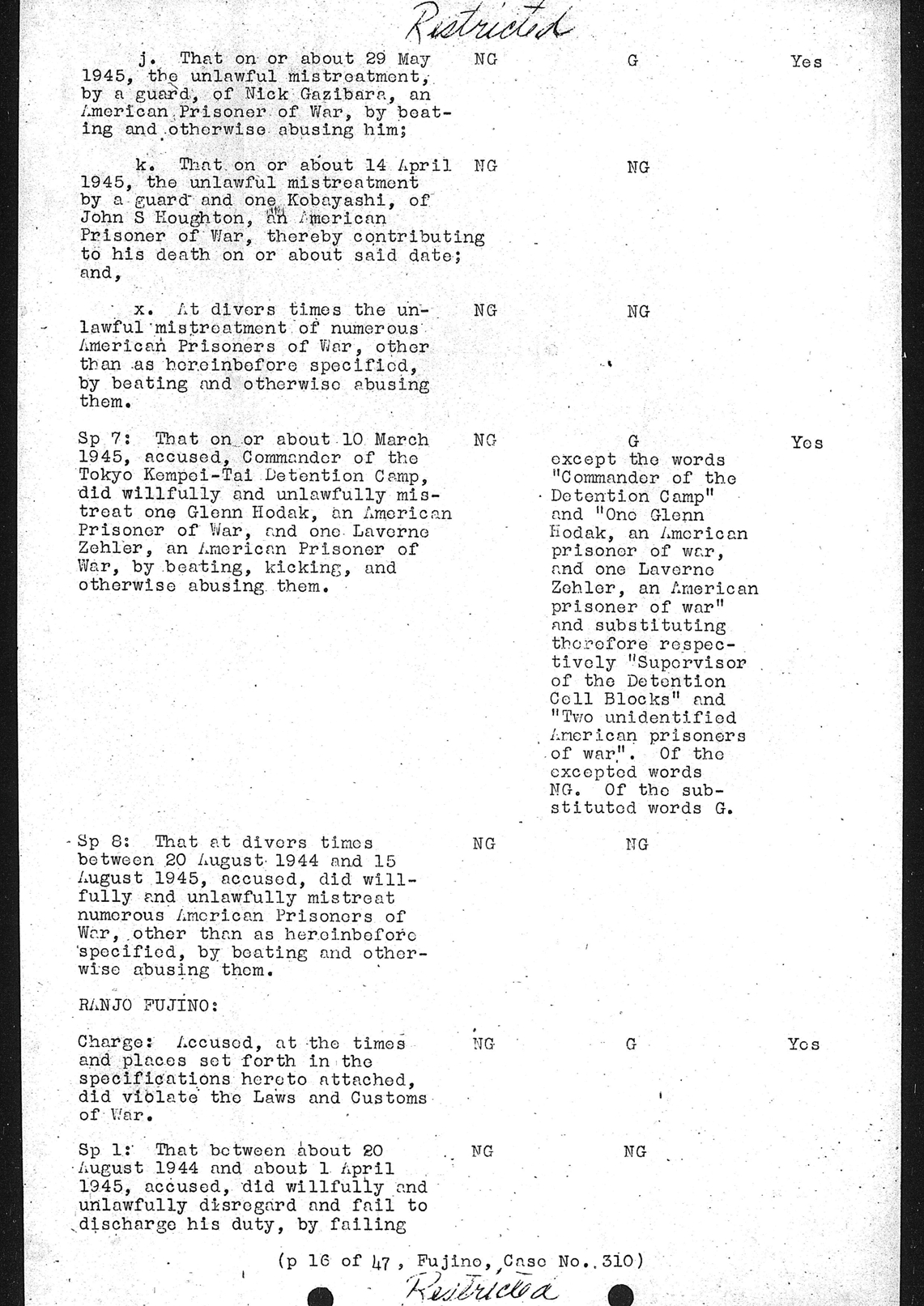 Sgt Warren Leonard Olson Tokyo Kempei Tai Headquarters Yokohama Trial T310 Page 2