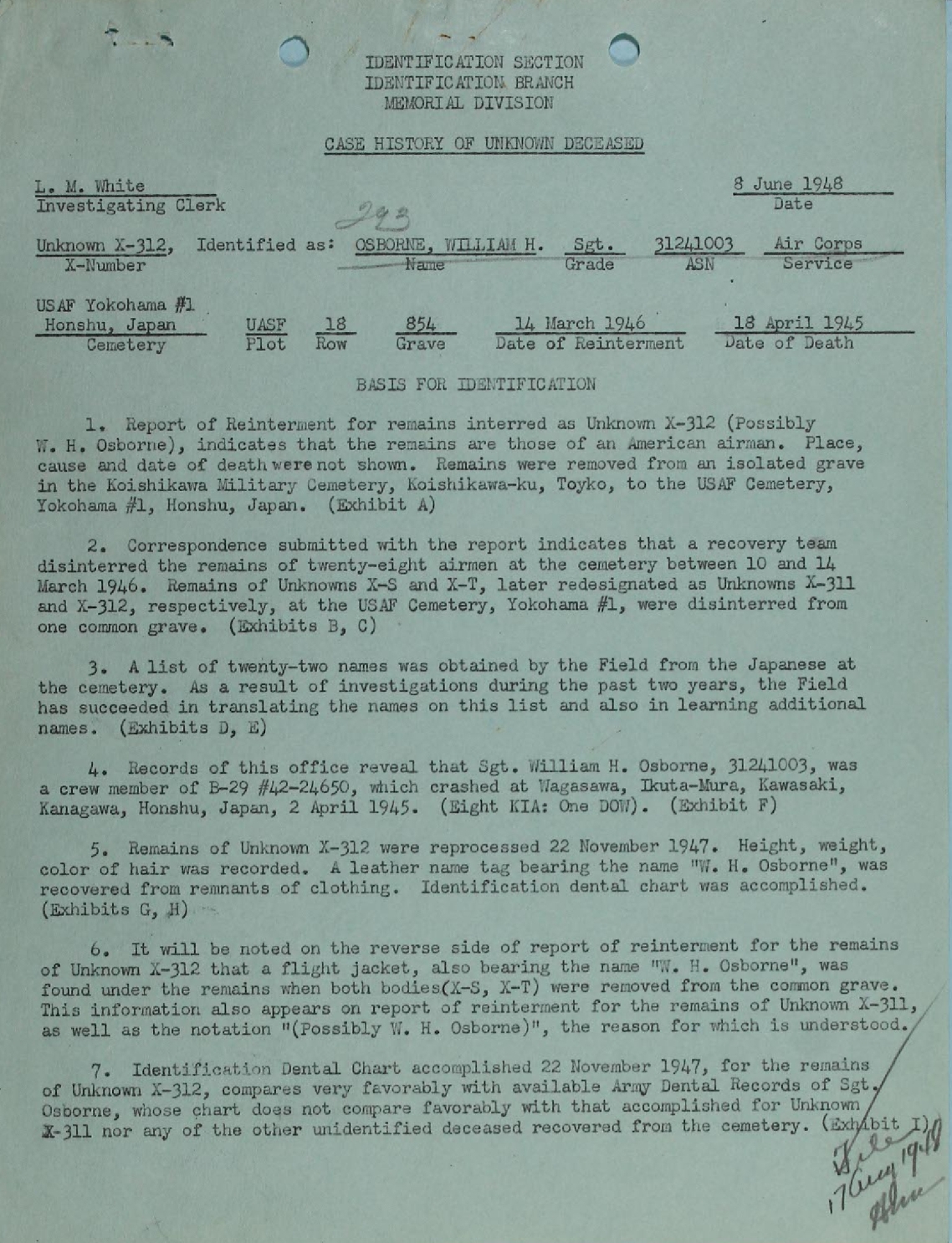 CASE HISTORY OF UNKNOWN DECEASED 8 JUNE 1948 PAGE 1