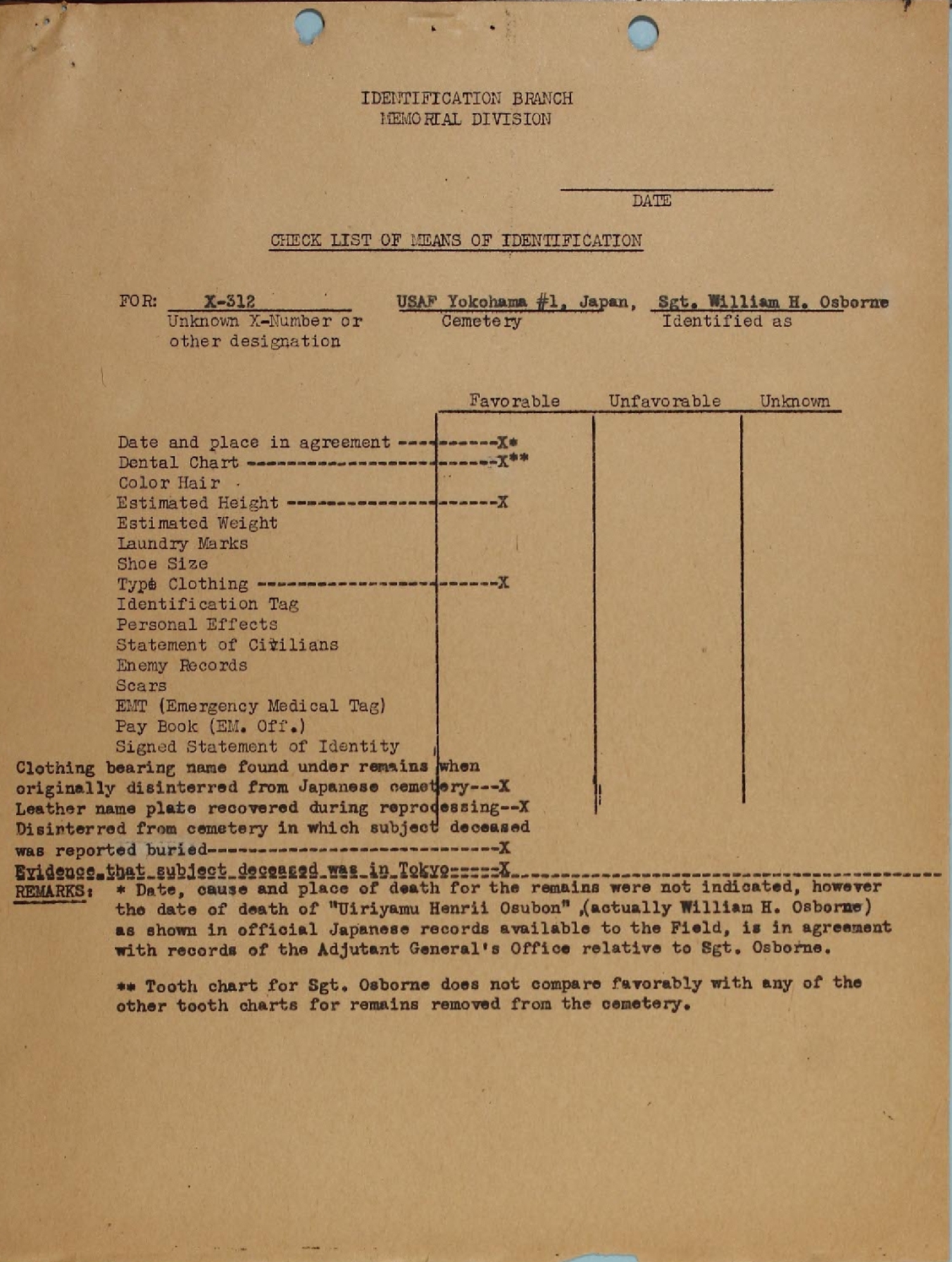 Sgt William Henry Osborne Eastern District Tokyo Kempei Tai Headquarters Identification Page 2