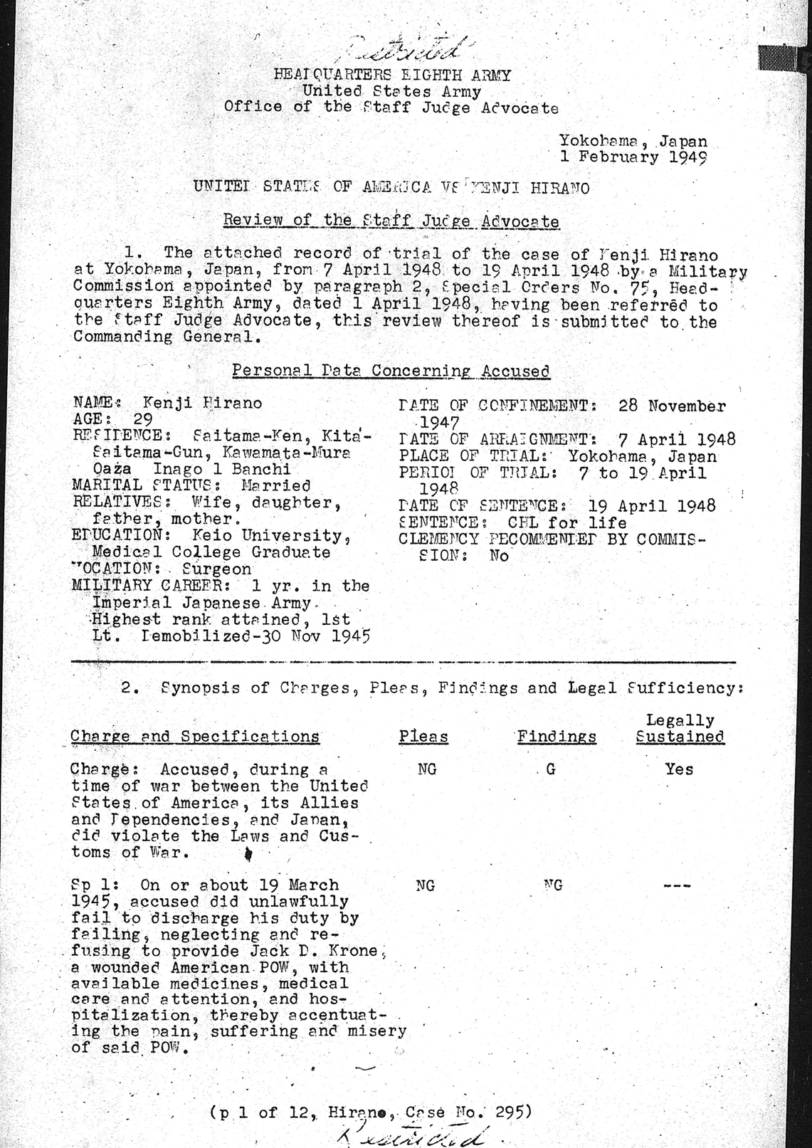 Yokohama Trial T 295 concerns Sgt Jack Krone and Sgt William Henry