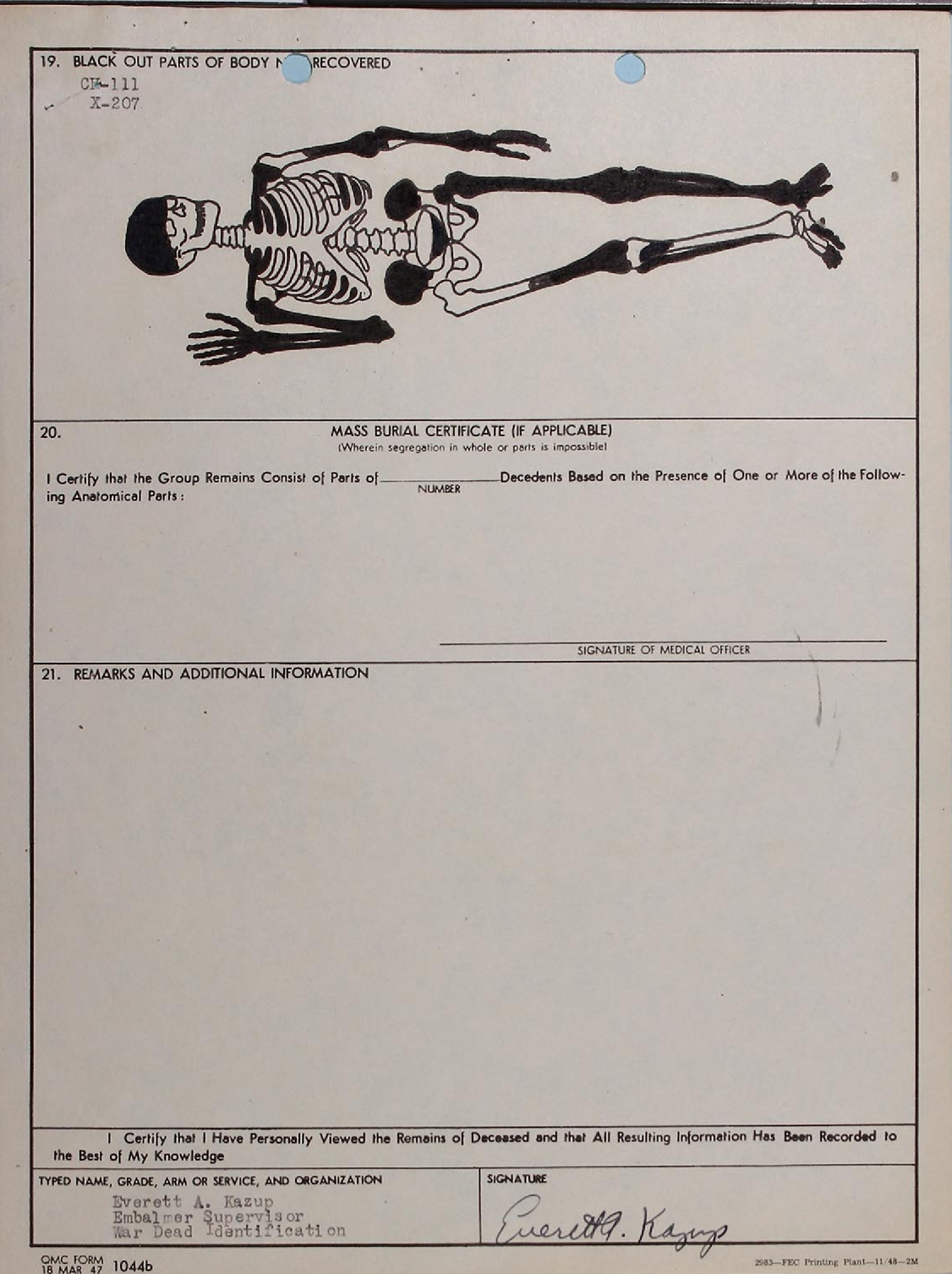 skeletal diagram, and the form titled |