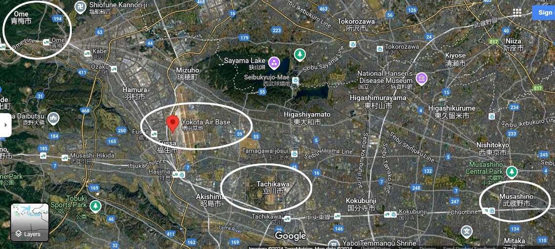 The first map shows the Mission Target, the Musashino Aircraft Plant