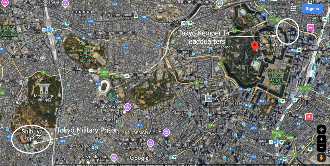 ( lower right corner ) This is followed by a diagram of where the At the bottom is a post-war aerial view of the Tokyo Military Prison. |