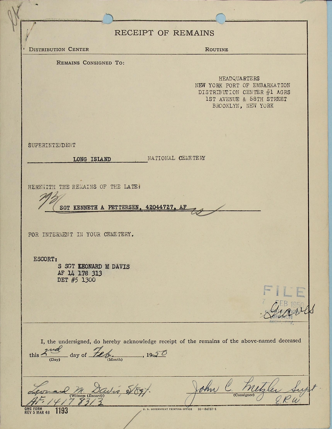 This took place from 12 - 17 January 1950. His escort was SSgt Leonard