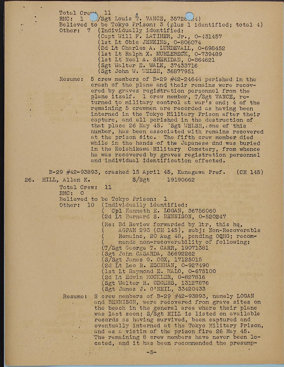 Within these pages are the names of the 37 Unknowns ******** B-29s are listed by date of crash and includes the The first B-29 in the list crashed on 27 January 1945. |