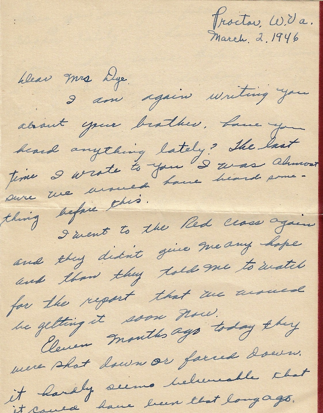 LETTER TO MRS VERNON DYE FROM MRS ALBERTA RICHMOND 2 MARCH 1946