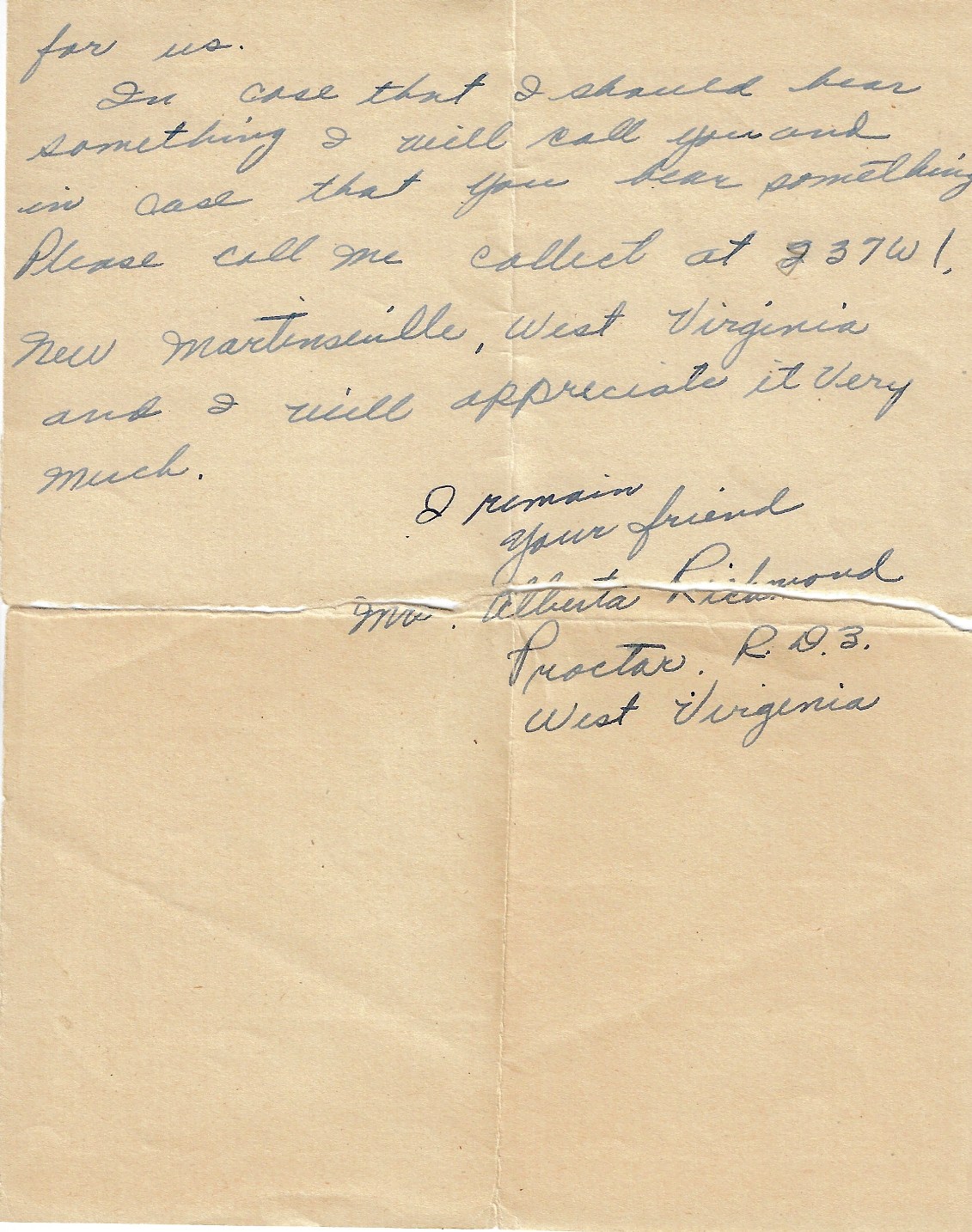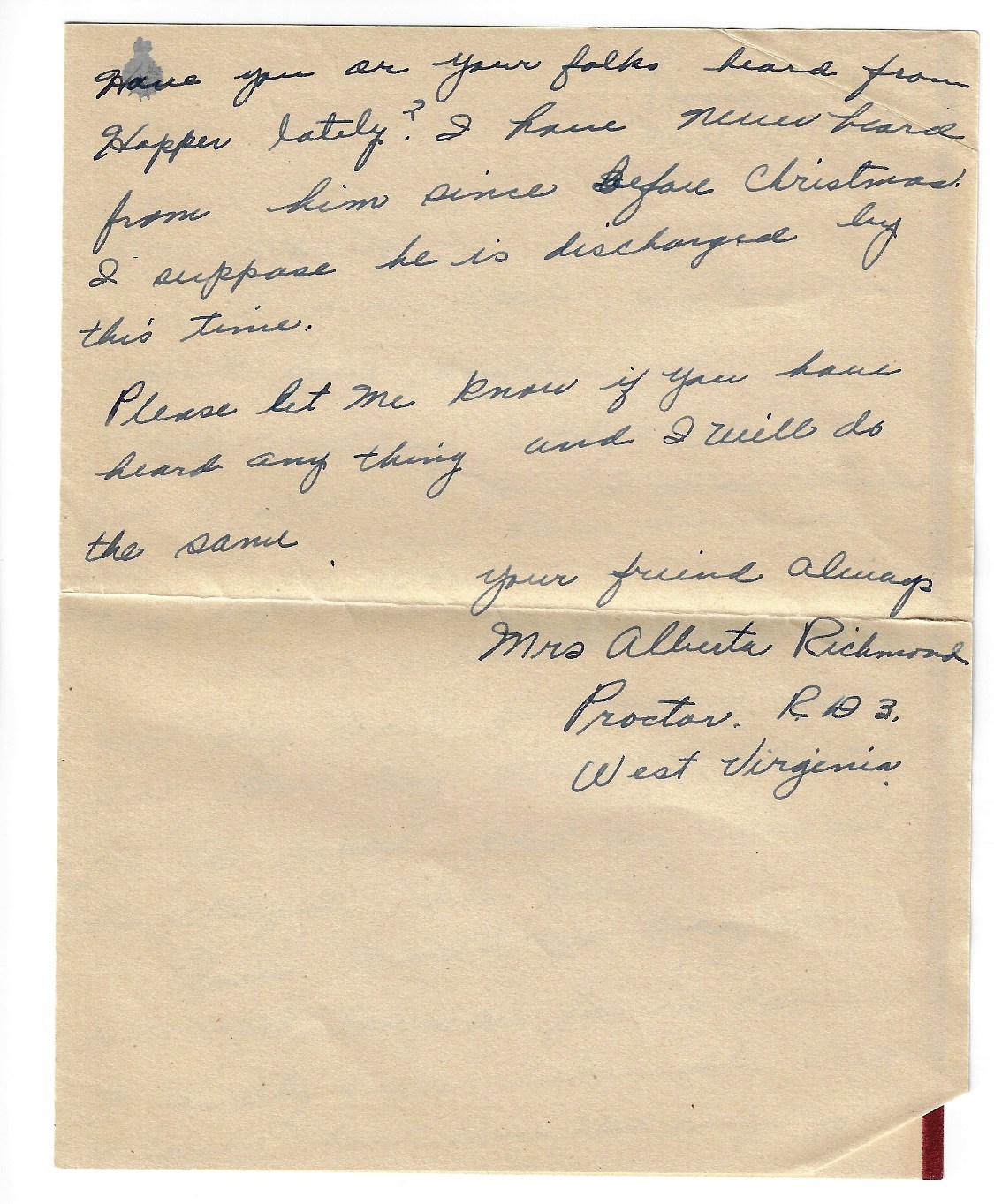 LETTER TO MRS VERNON DYE FROM MRS ALBERTA RICHMOND 2 MARCH 1946 PAGE 2