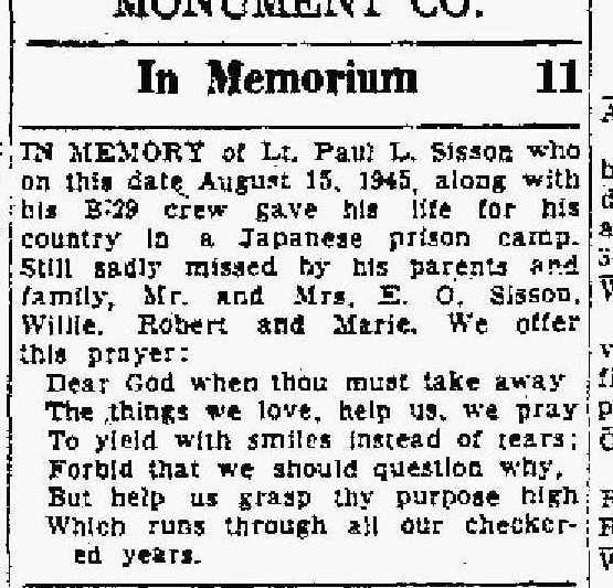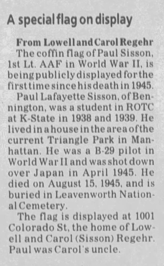 The dates range from 5 April 1945 to 16 September 2001. His mother's obituary contains details about the family. She died in Minneapolis, Kansas, which is located 10 miles northwest of Bennington. |