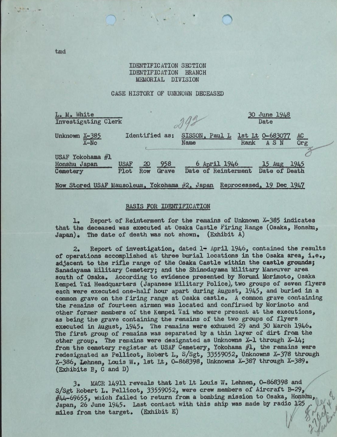 of 1st Lt Paul Sisson ... "