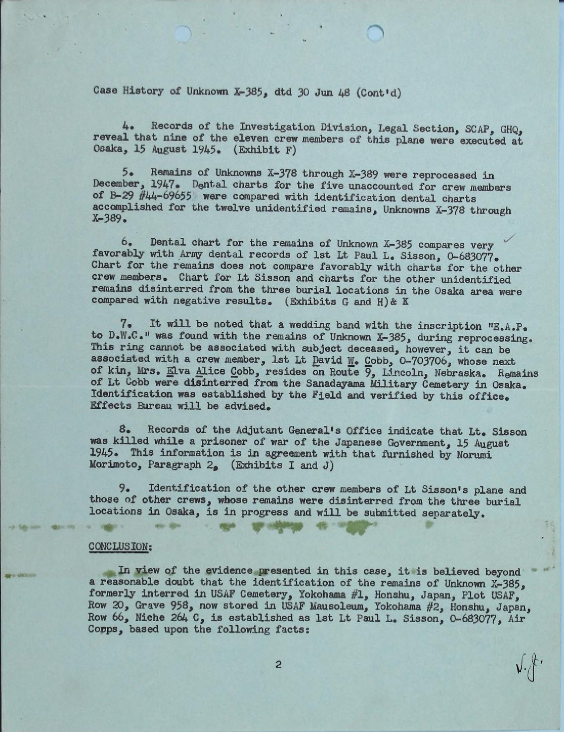 "...beyond reasonable doubt...the remains of X-385 are those