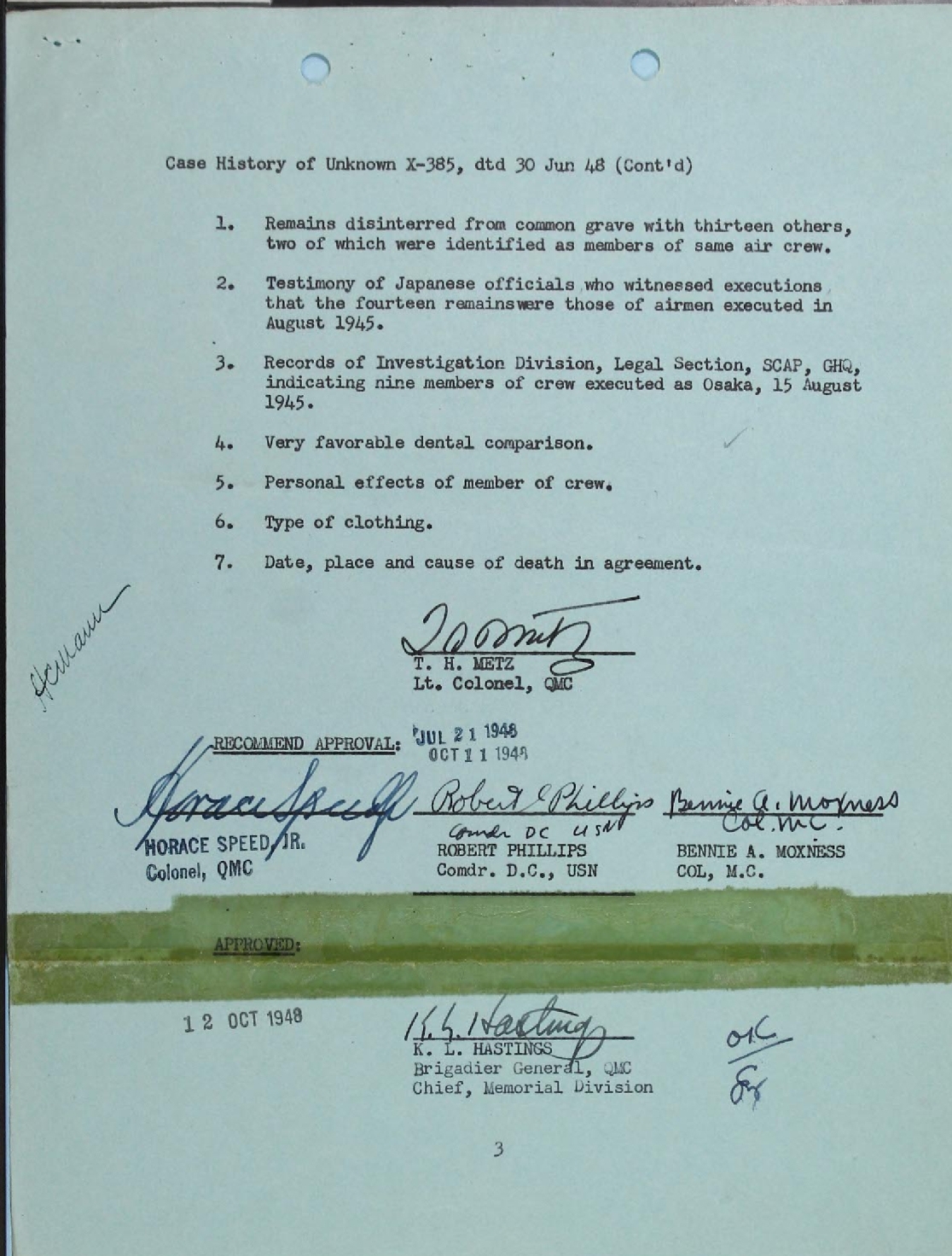 Approval Recommended 21 July and 11 October 1948.