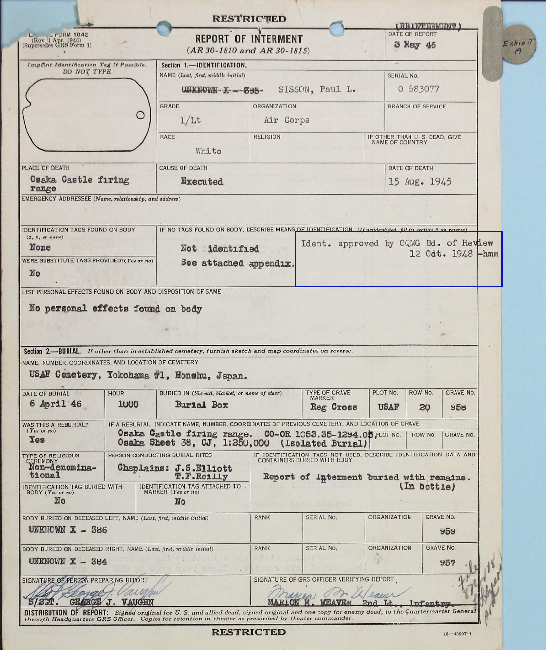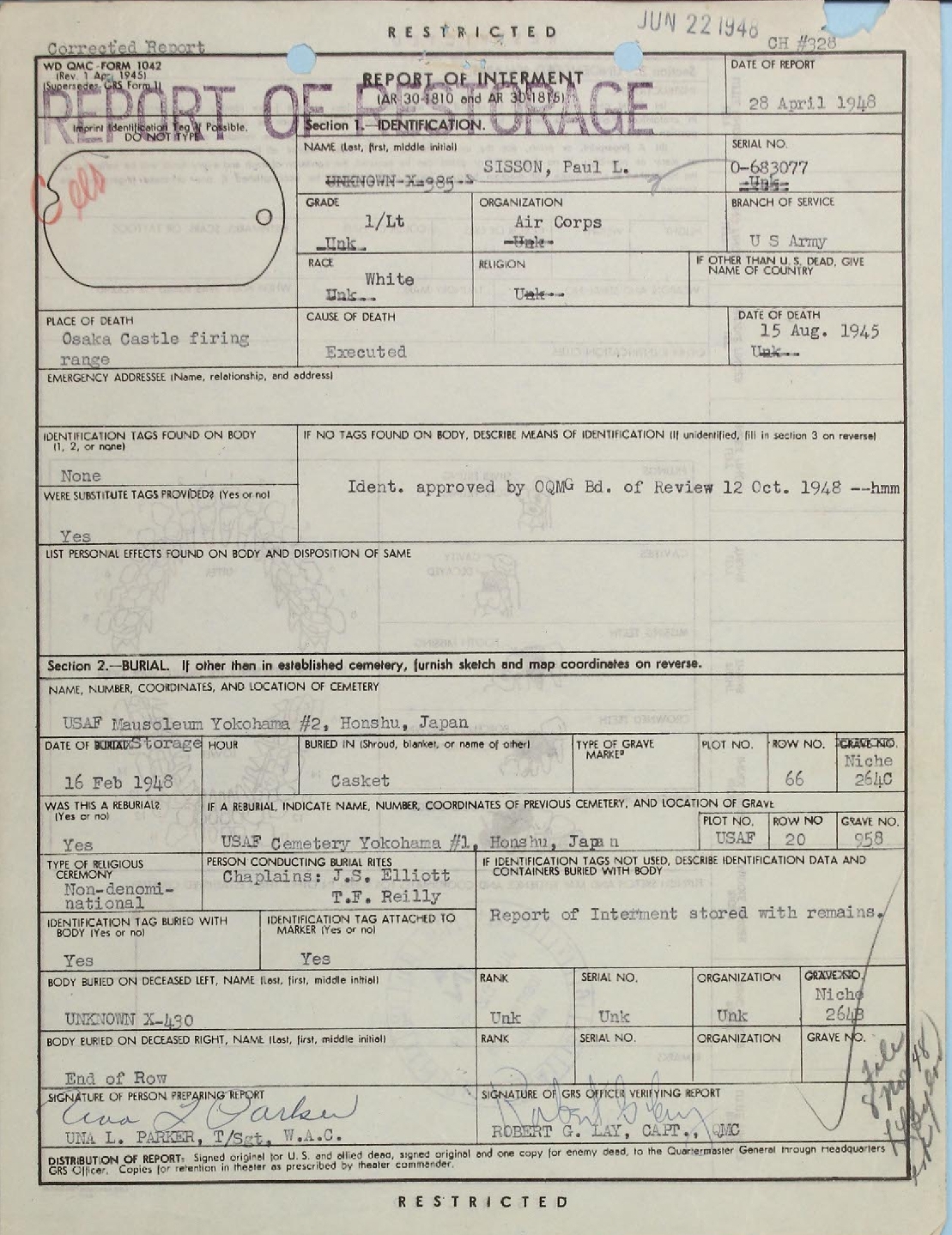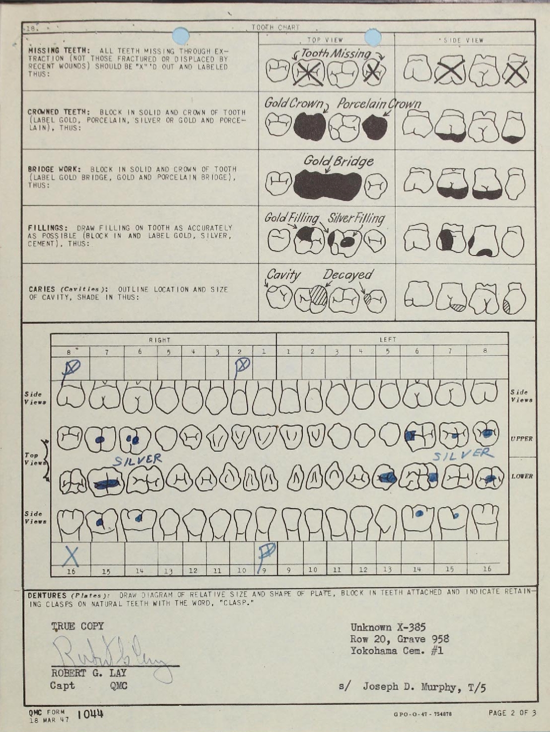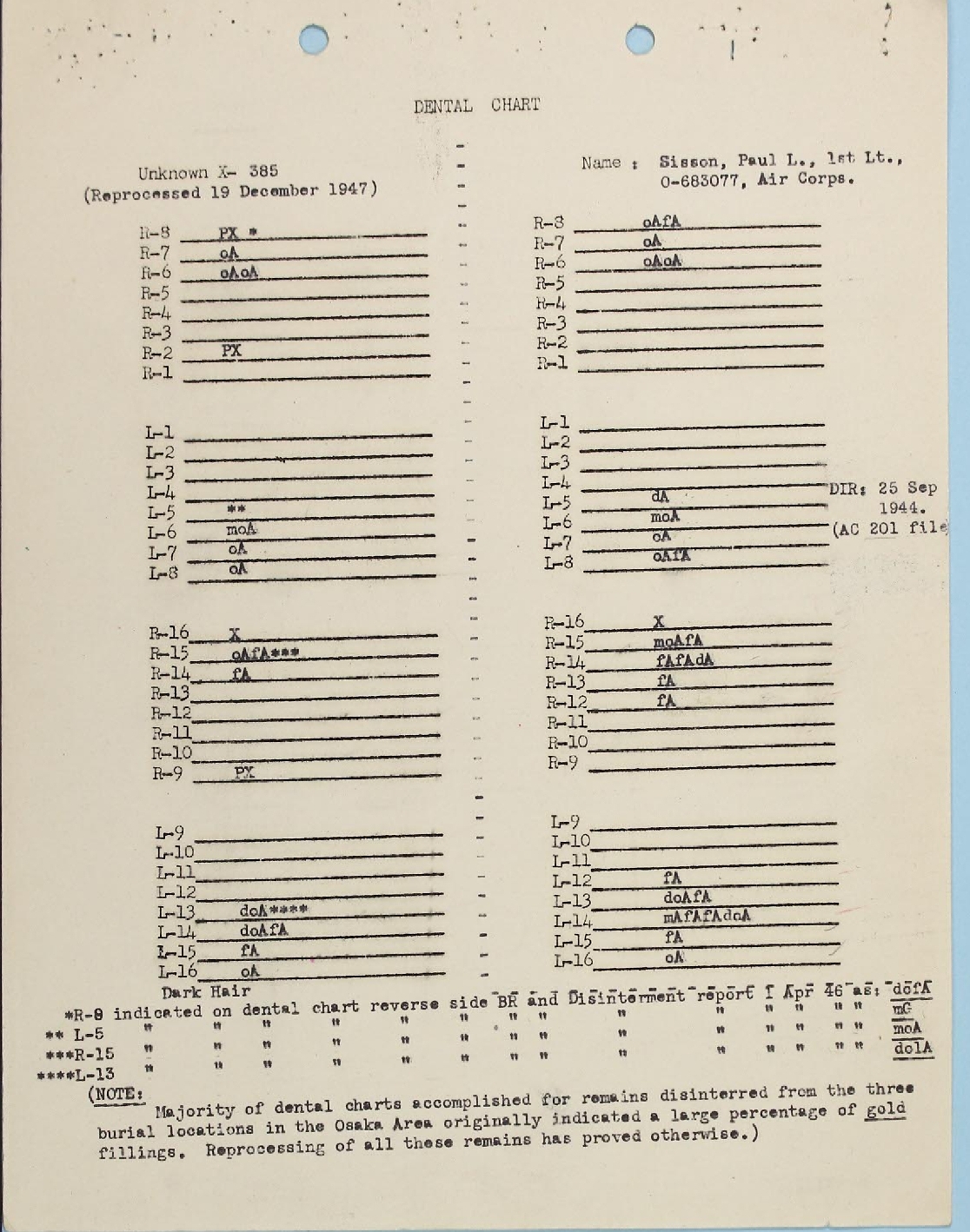 This page contains documents from Lt Sisson's IDPF Each one has the notation that his These are followed by two pages of Lt Sisson's dental records |