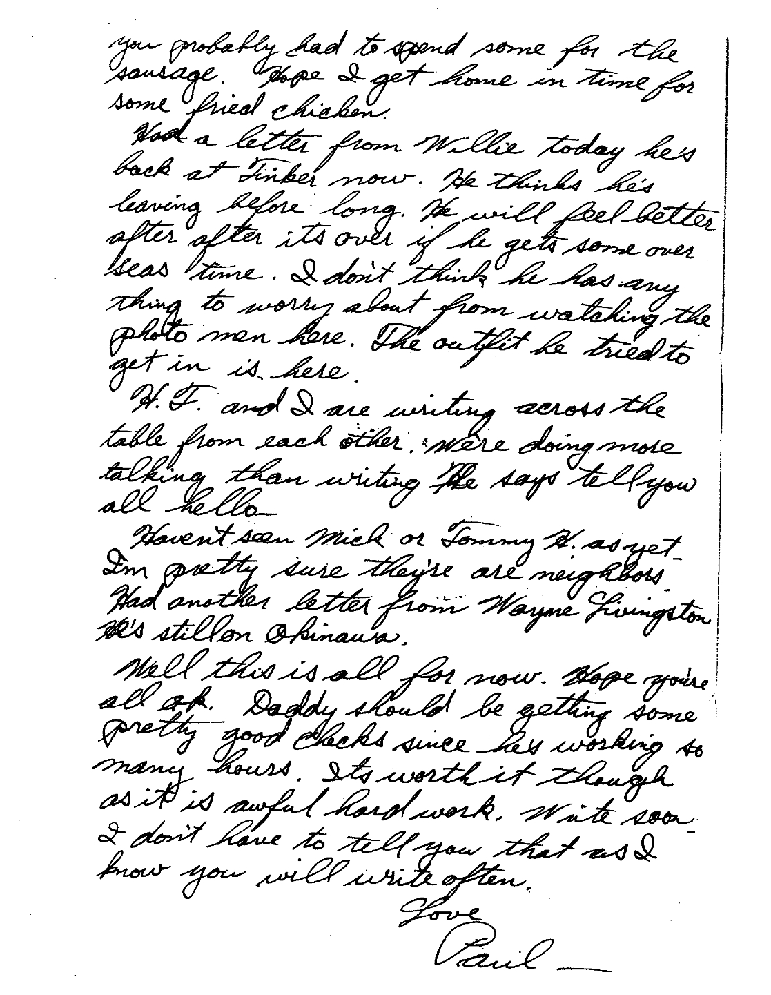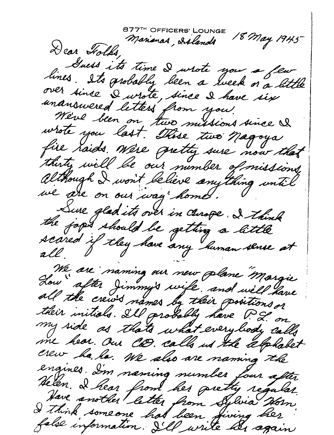 LETTER FROM LT PAUL SISSON TO HIS PARENTS 18 MAY 1945