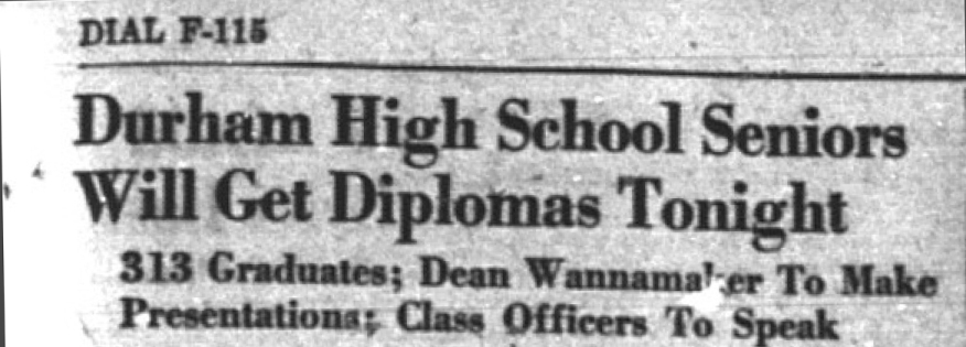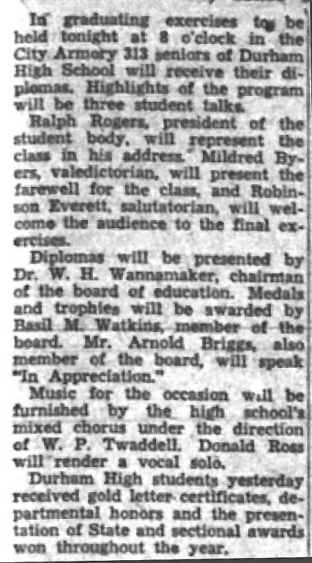 original source: Durham Herald Sun Tuesday, June 1, 1943 source: Durham County Library Durham, North Carolina This is a portion of the complete article which also listed all the Seniors who received various awards.